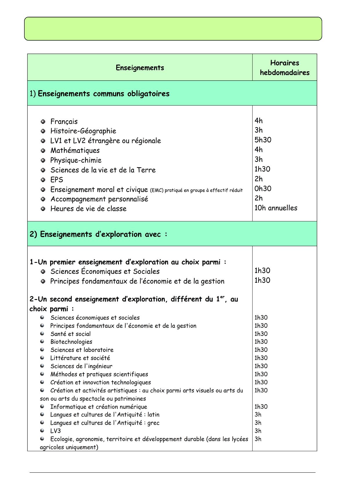 2) Le second enseignement d’exploration doit être différent du premier.