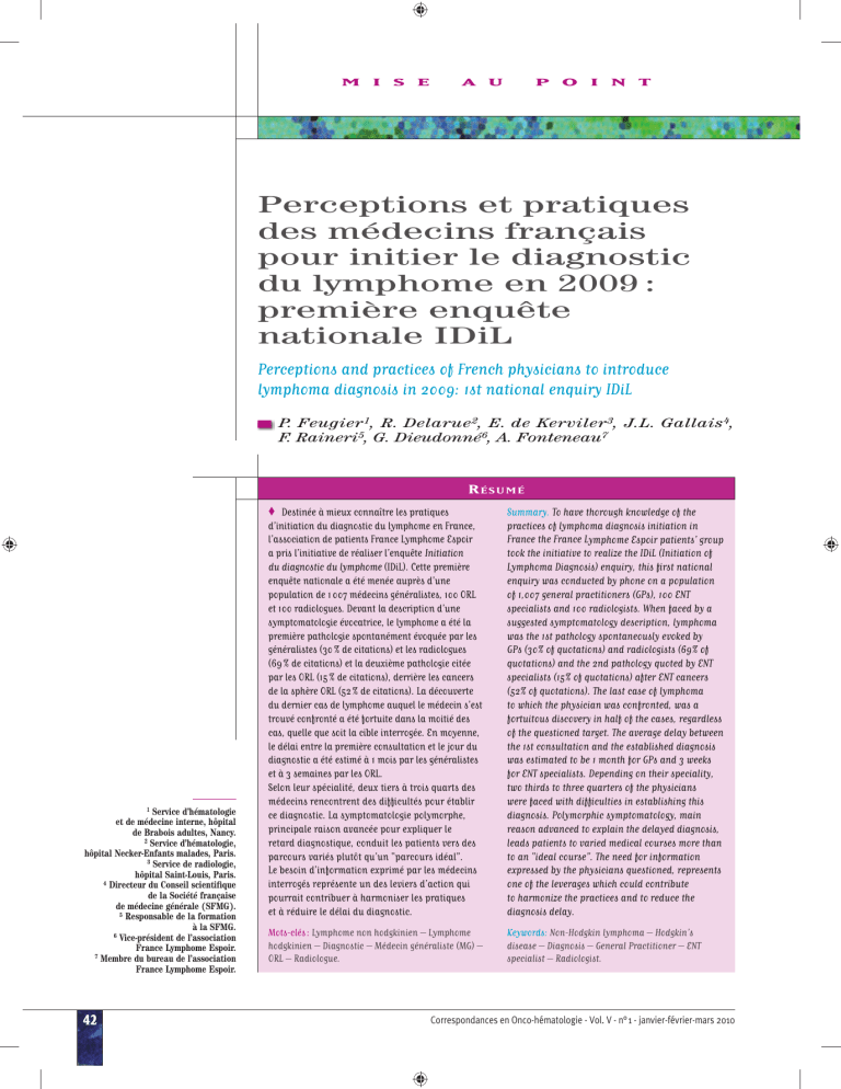Perceptions et pratiques des médecins français pour initier le diagnostic