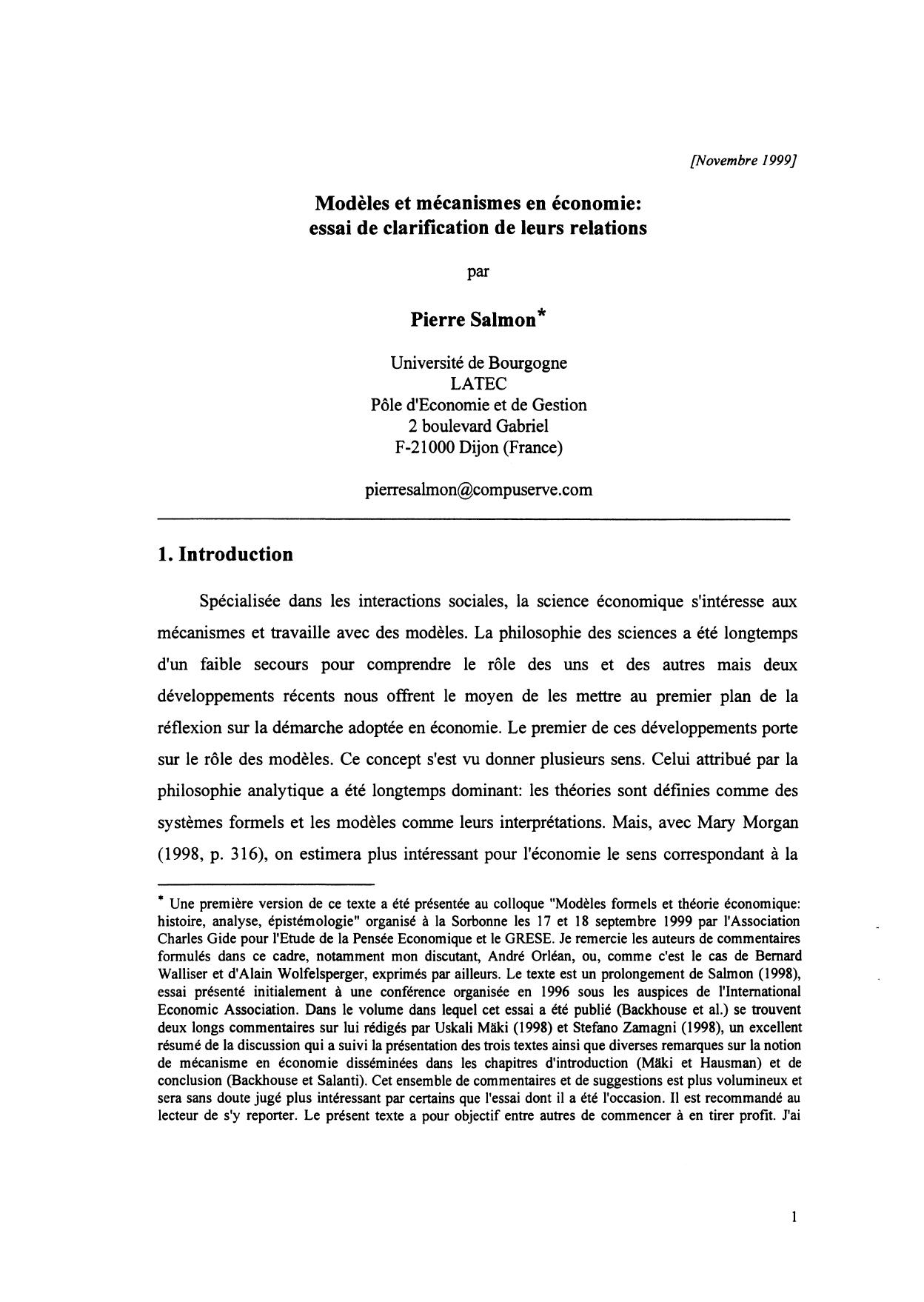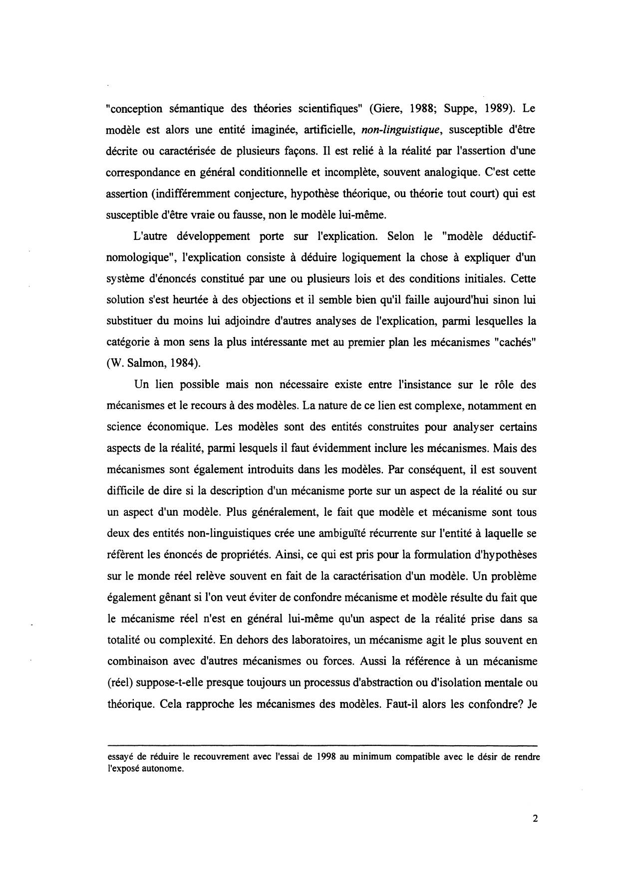 théorique. Cela rapproche les mécanismes des modèles. Faut-il alors les confondre? Je