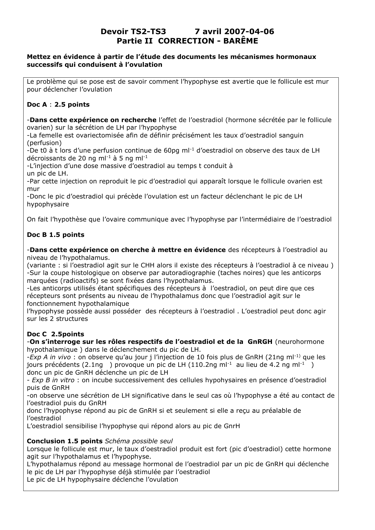 -Dans cette expérience on recherche l’effet de l’oestradiol (hormone sécrétée par le follicule