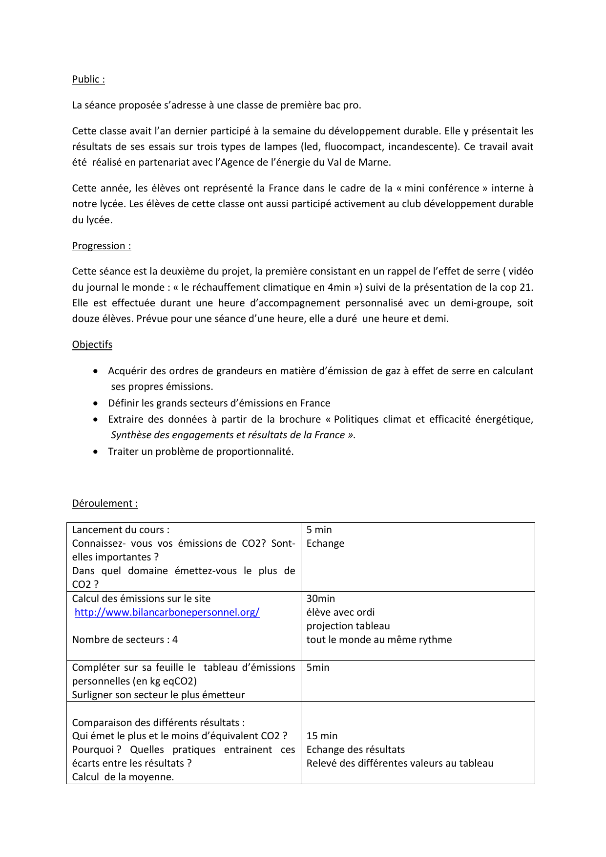 Cette séance est la deuxième du projet, la première consistant en un rappel de l’effet de serre ( vidéo