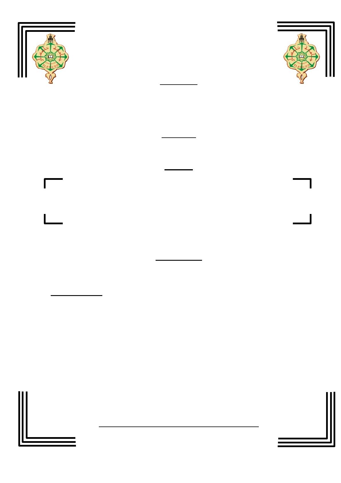 Tlemcen qui m’a fait l’honneur de présider le jury de mémoire Qu’il trouve ici ma gratitude et