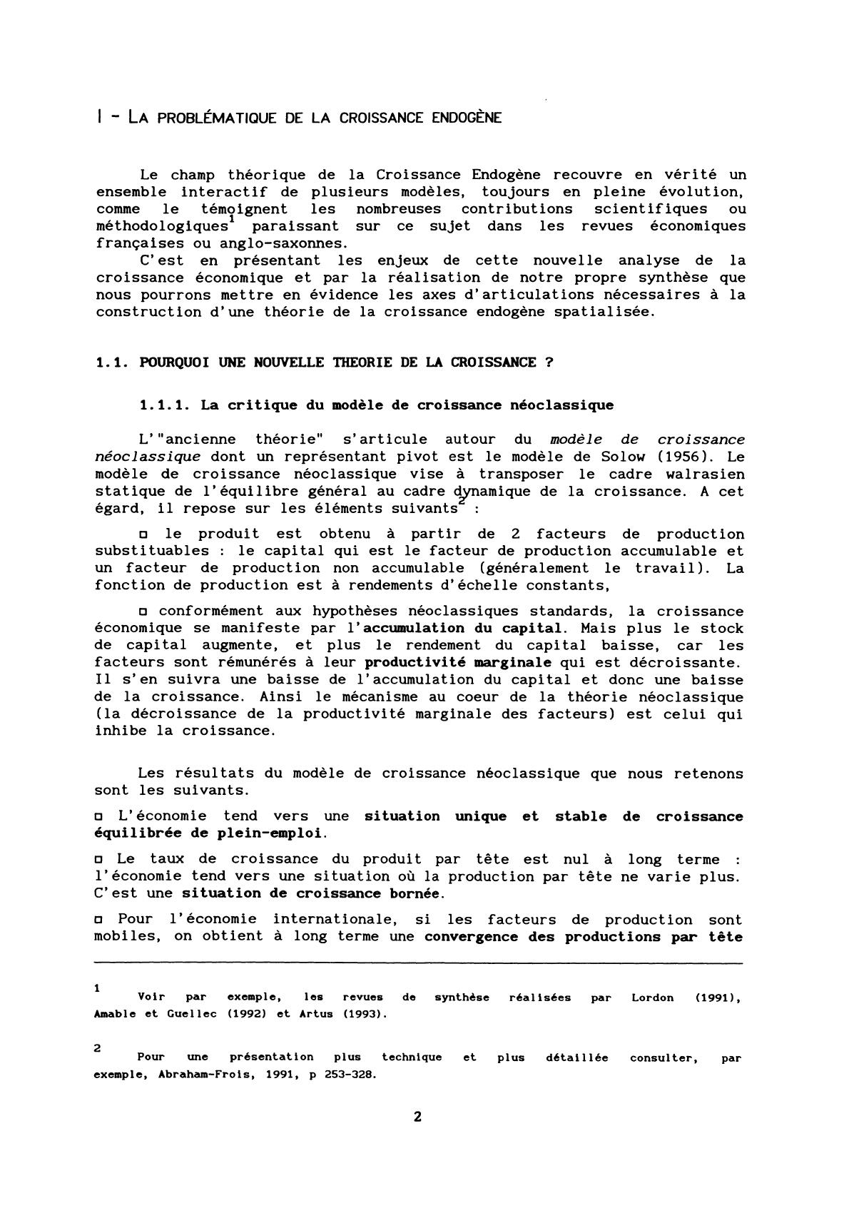 1/ On peut vouloir transposer simplement les théories de la croissance
