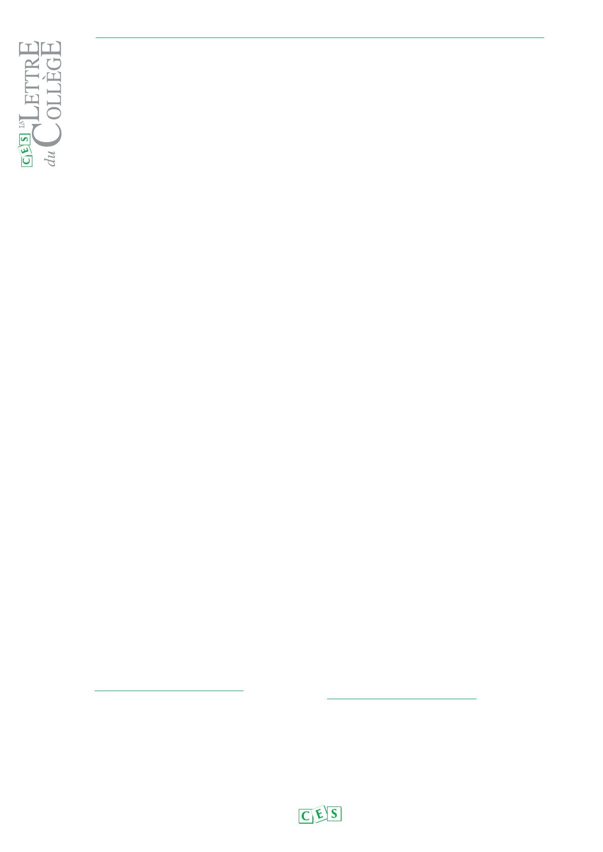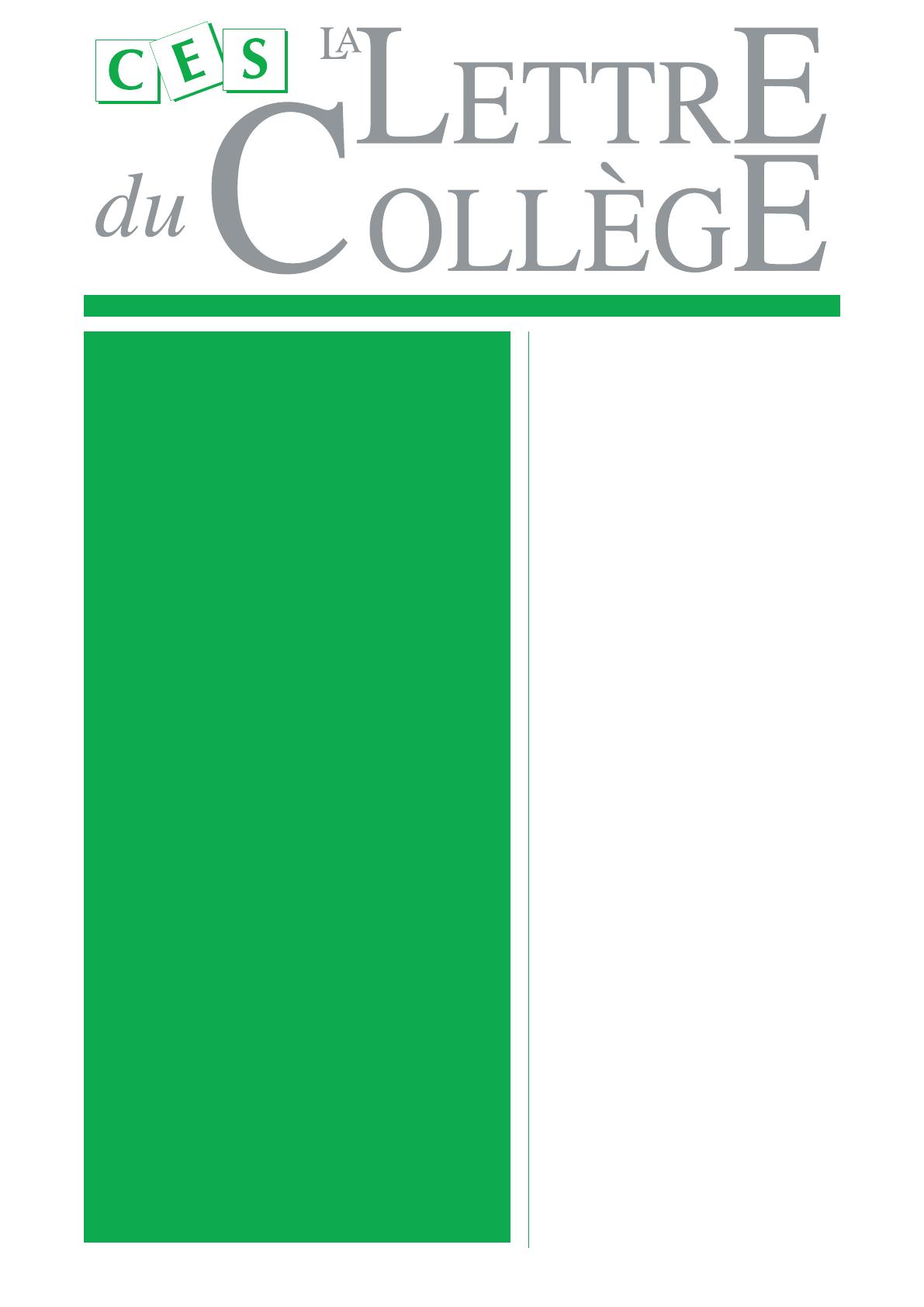 Ce numéro de La Lettre du Collège paraît avec quelques mois de