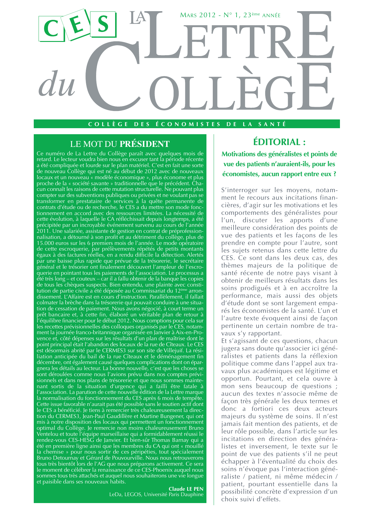 MARS 2012 - N° 1, 23ème ANNÉE