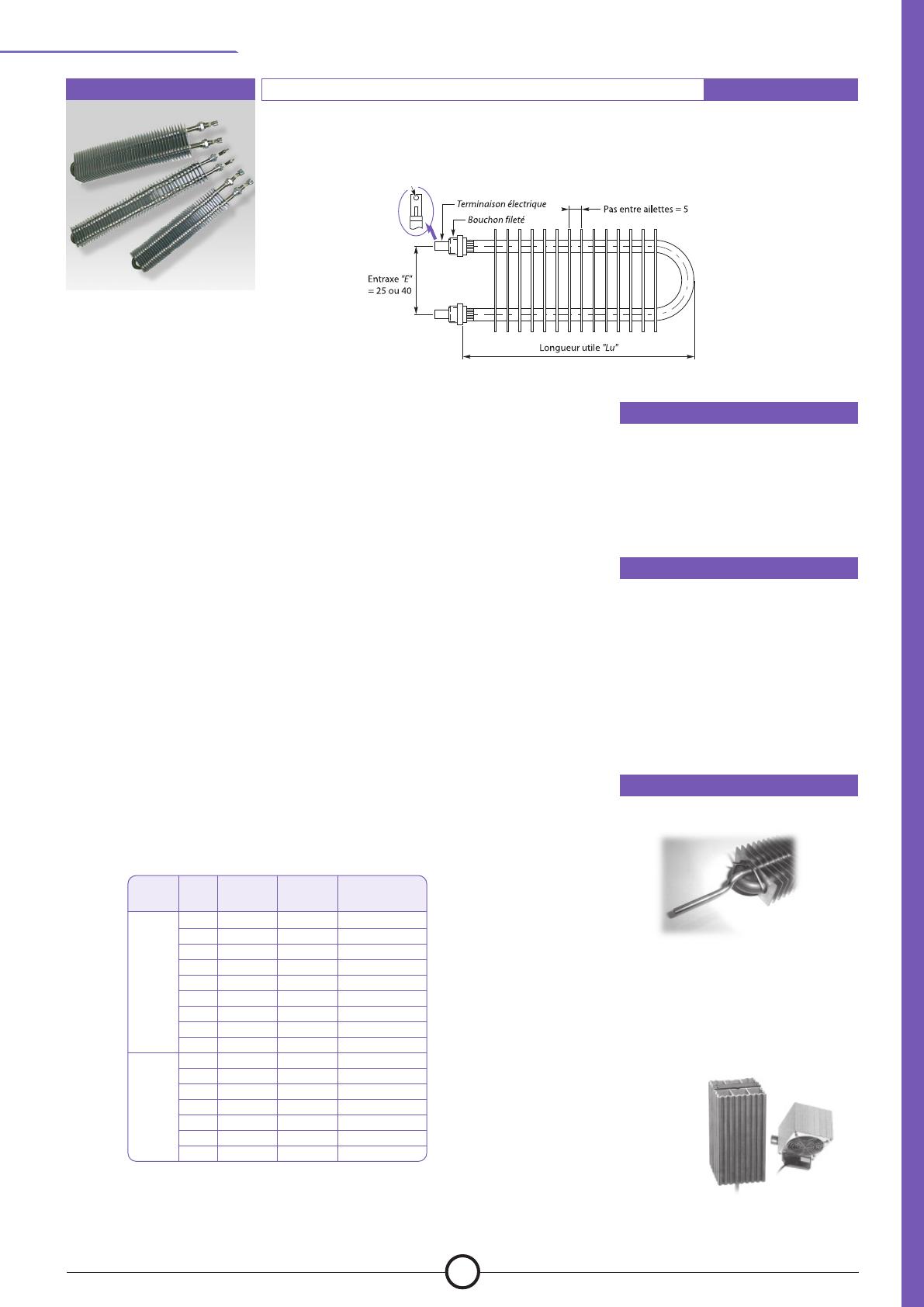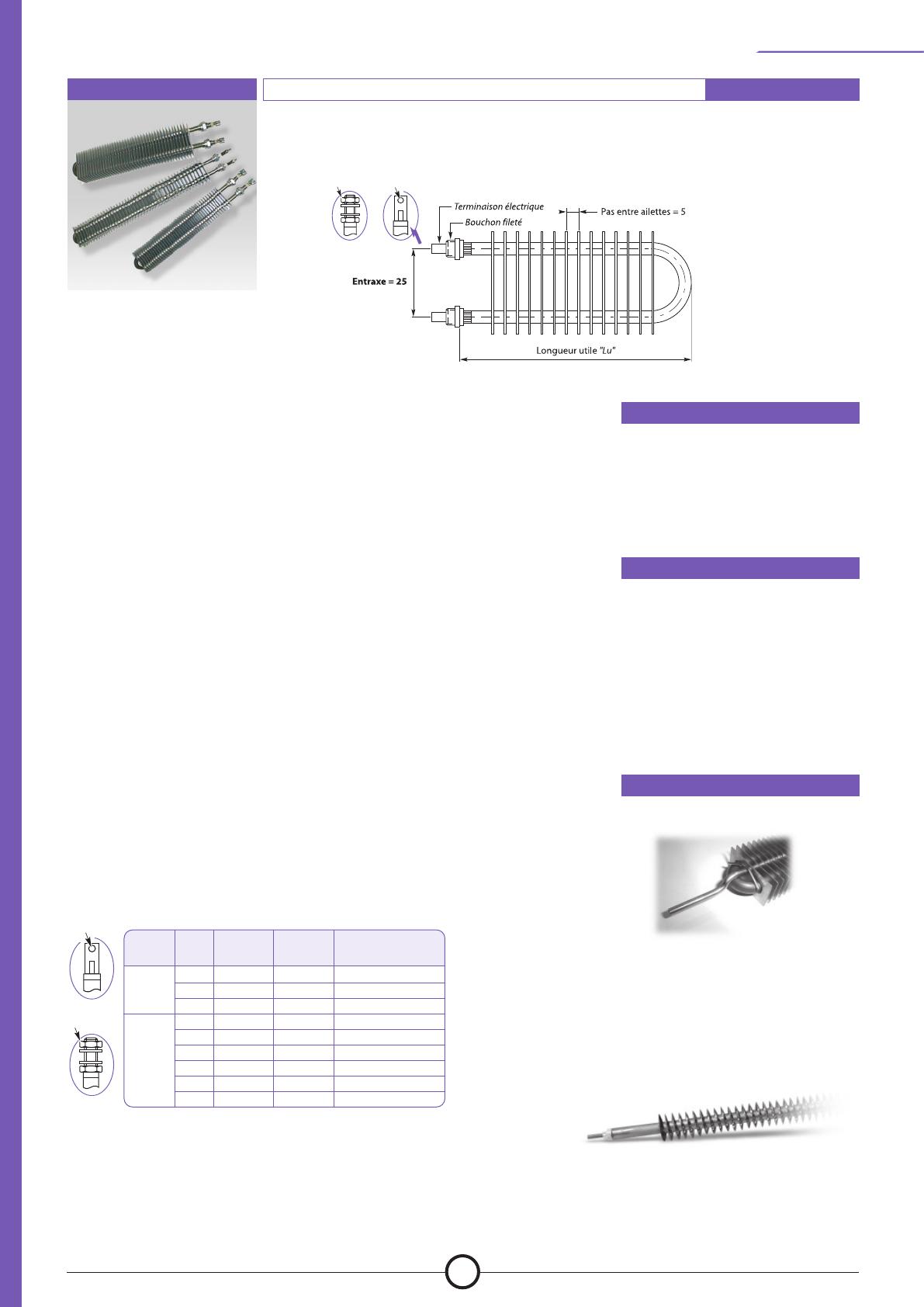 - Dimensions : pas entre ailettes "P" = 5 mm, entraxe "E" = 25 mm