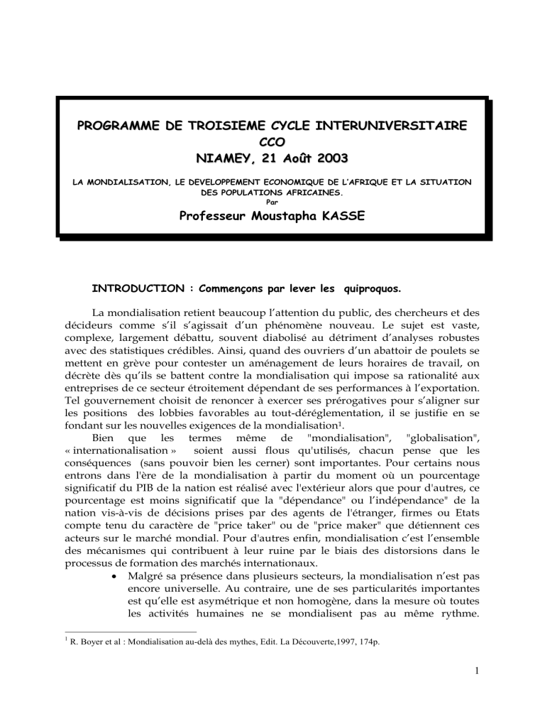 mondiale et peuvent, toute conséquence, déterminer les rythmes de croissance des
