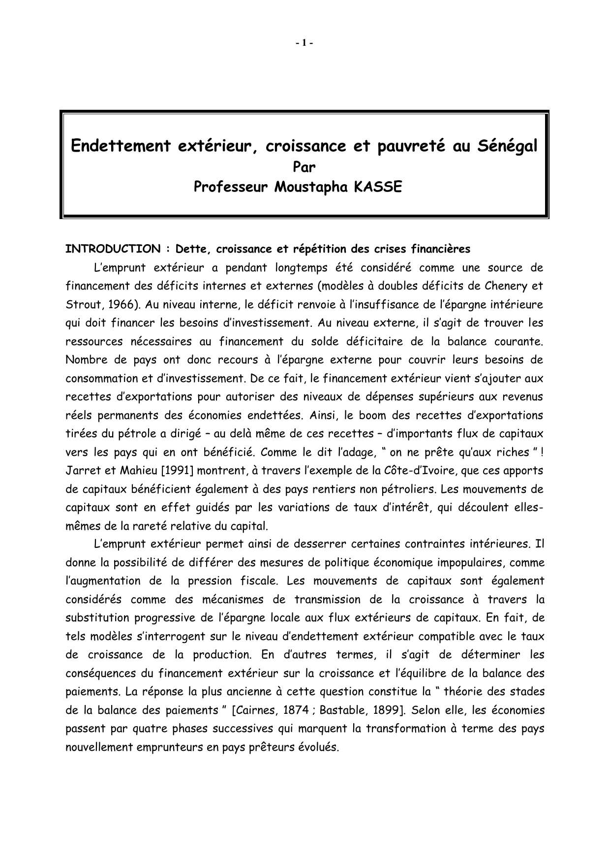 II/ Endettement extérieur et croissance au Sénégal