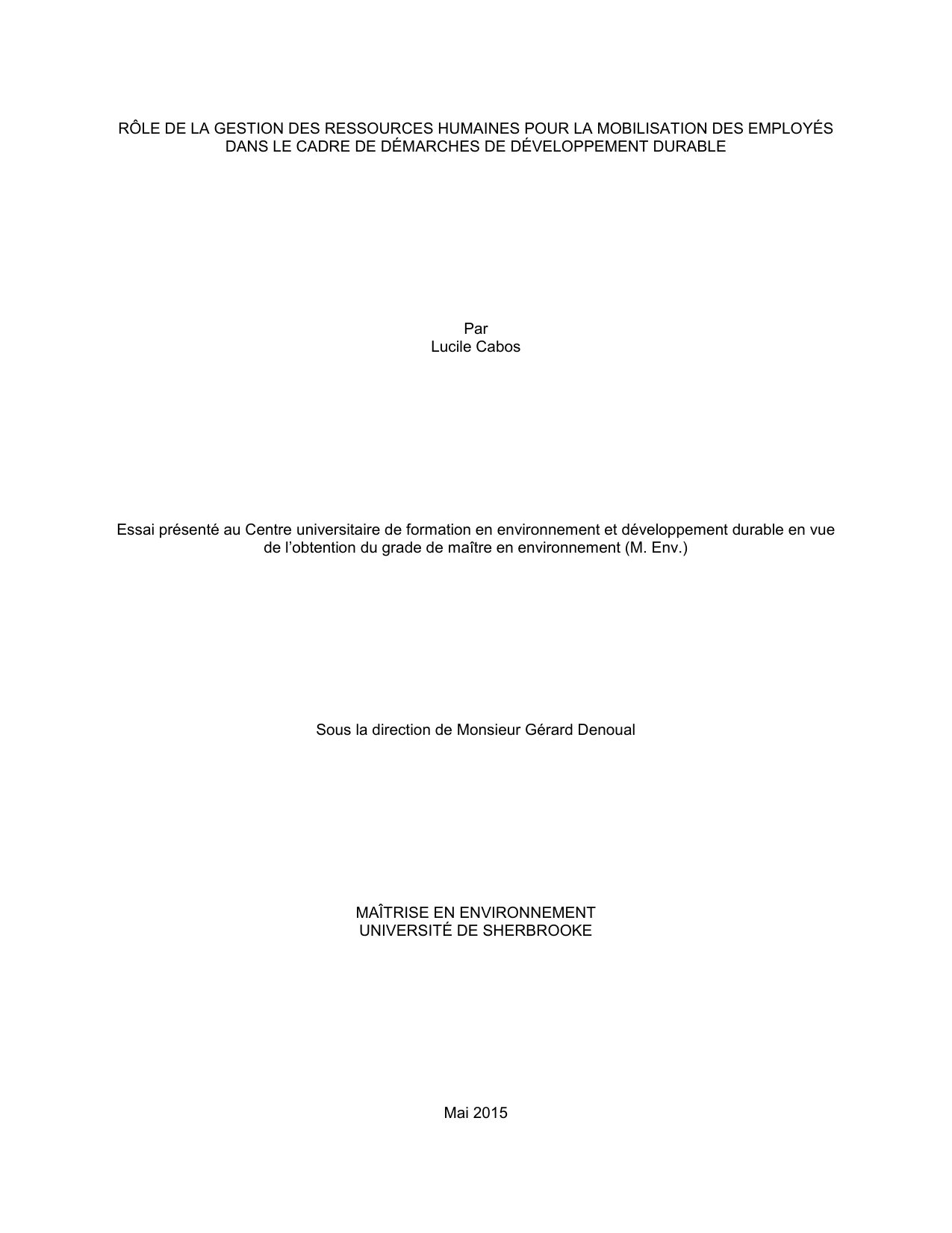 Mots clés : développement durable, petites et moyennes entreprises, employés, mobilisation,
