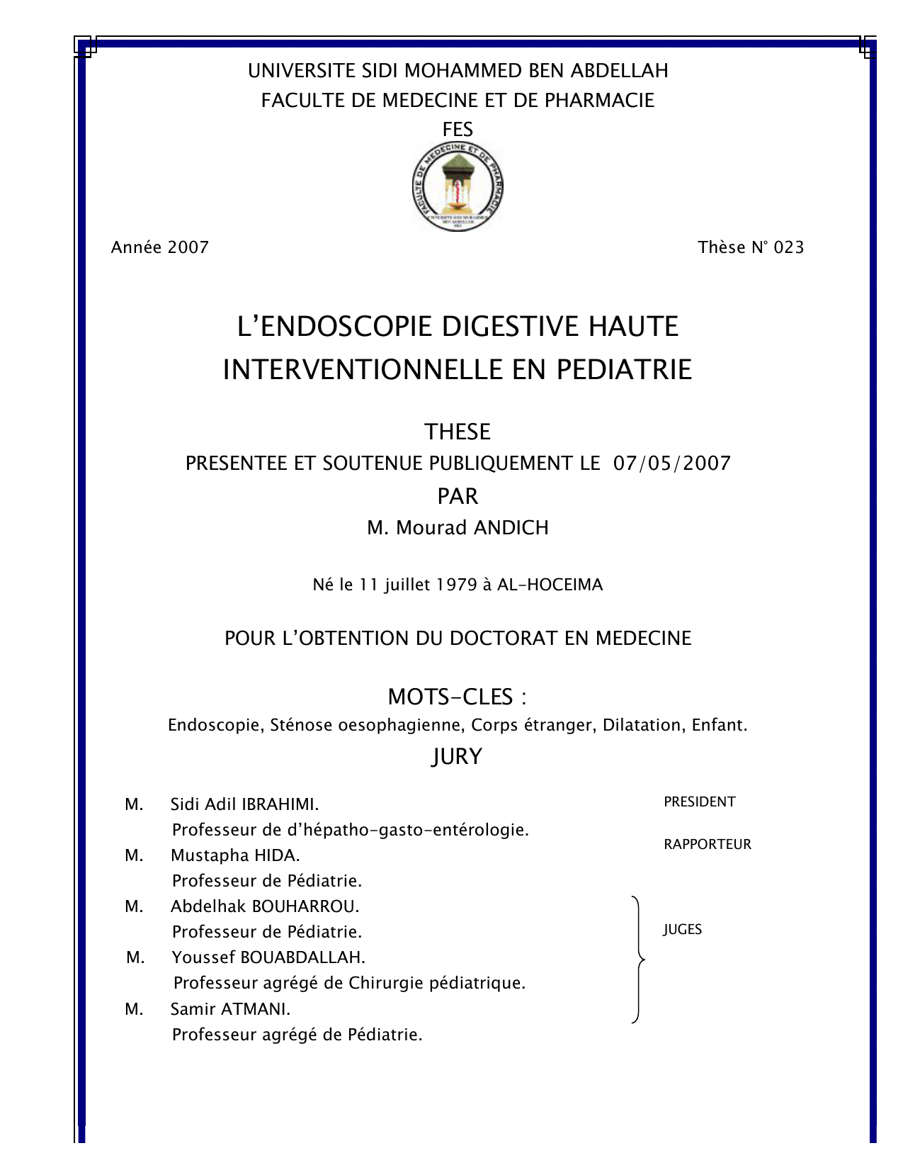 Année 2007 Thèse N° 023