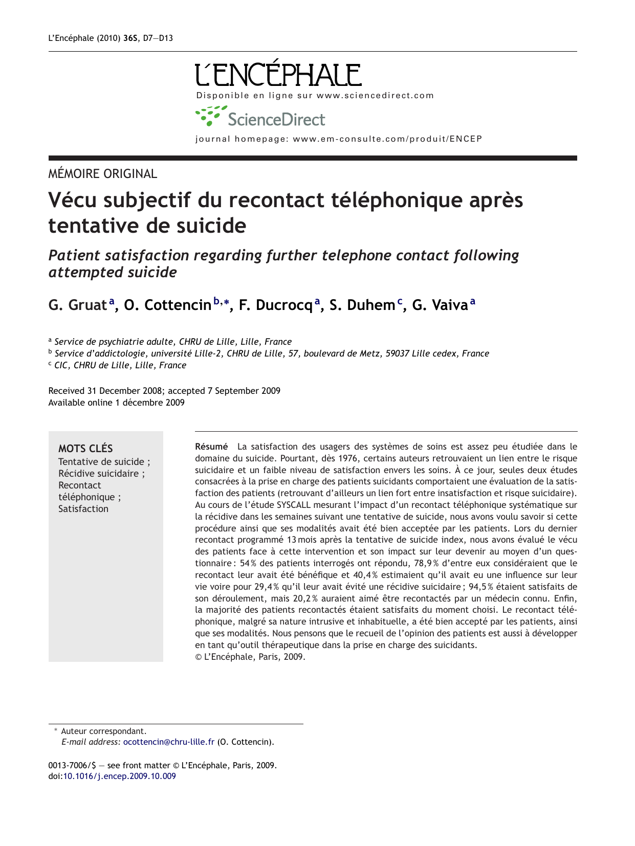 satisfaction and suicidal risk was found). During the SYSCALL study, which measured the impact