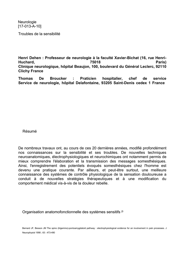 des nocicepteurs d'origine musculaire, articulaire ou viscérale est plus délicate. Il a été mis