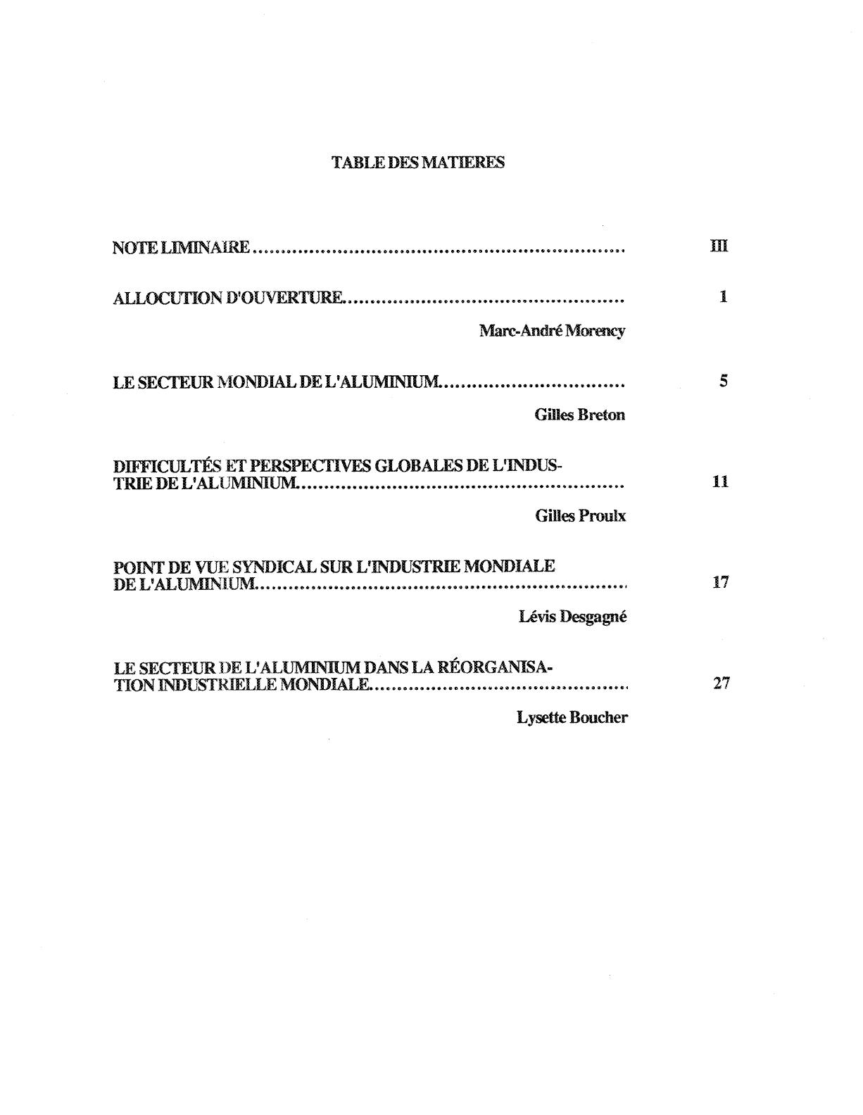 DE L'ALUMINIUM: PERSPECTIVES ET