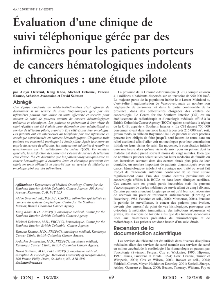 suivi en oncologie gérées par des infirmières sont d’une grande