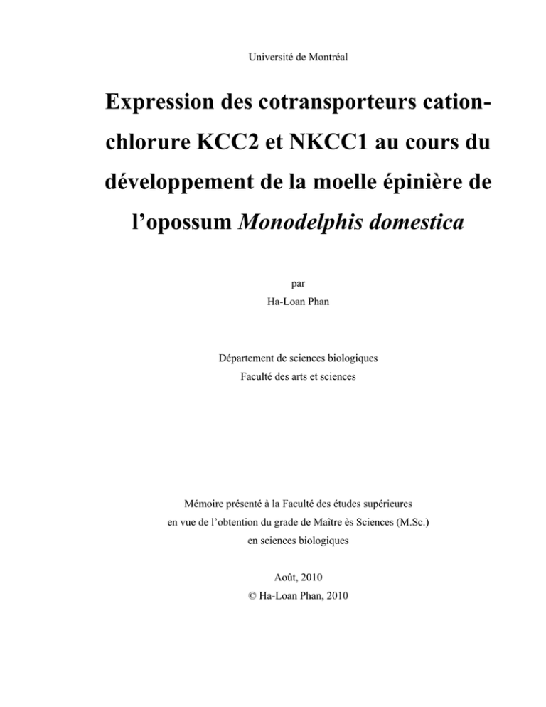développementale de KCC2 et NKCC1 chez l’opossum postnatal par immunohistochimie