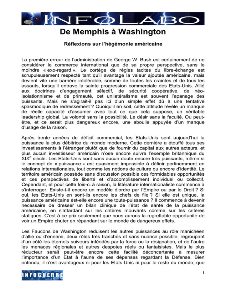 A cette époque, les Etats-Unis influencent sans être encore trop influencés, et