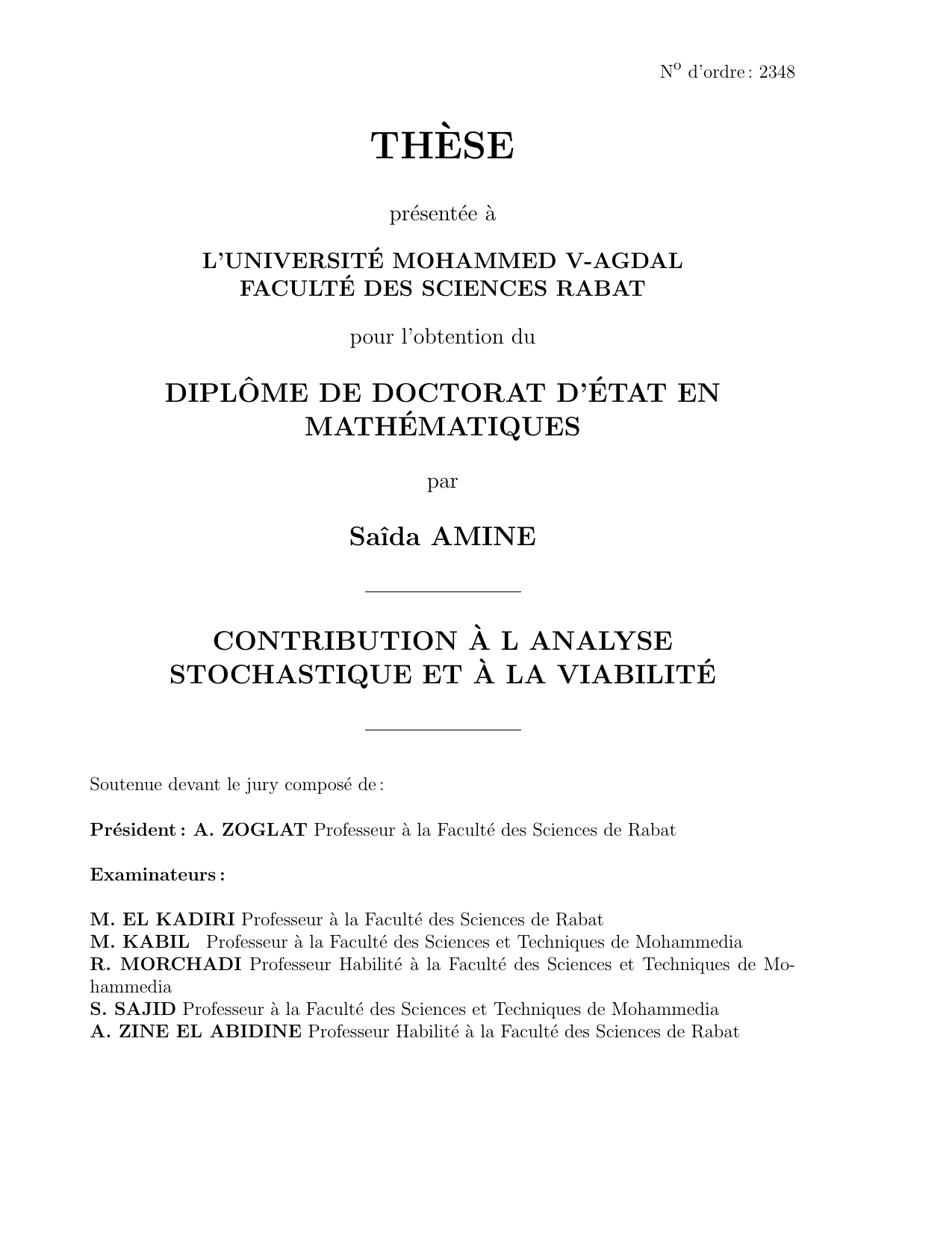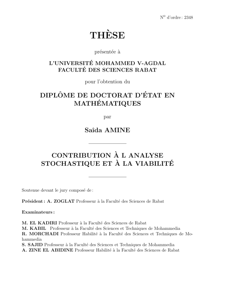 Professeur Habilit´e `a la Facult´e des Sciences de Rabat, qui a accept´e de faire partie du