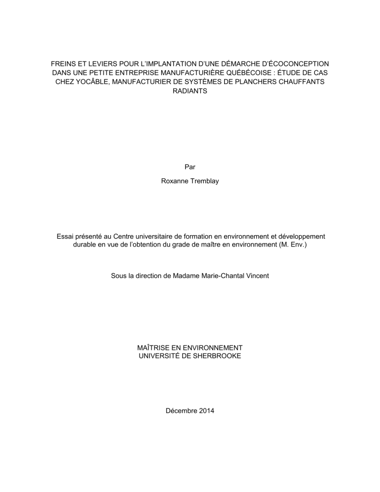 3.3 Les facteurs à succès d’une démarche ............................................................................. 30