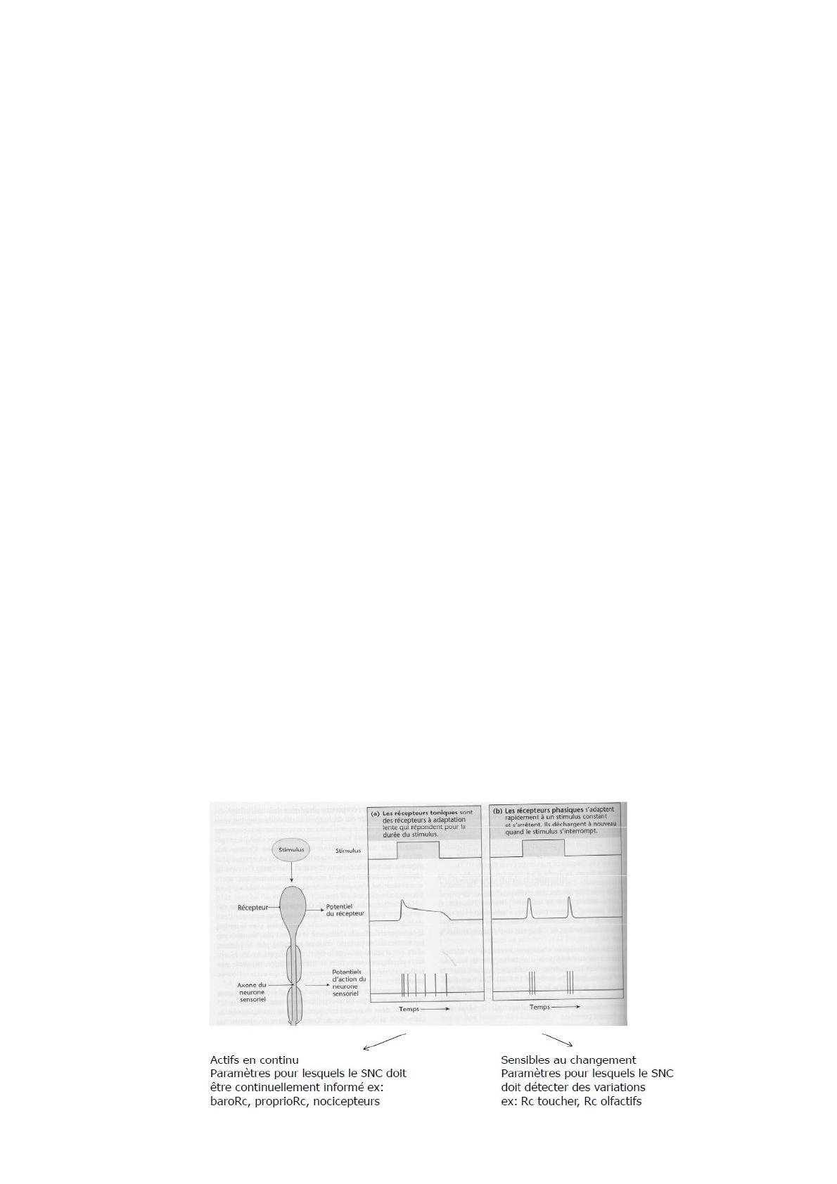- récepteurs d’adaptation rapide ou récepteurs phasiques : ils ne sont pas