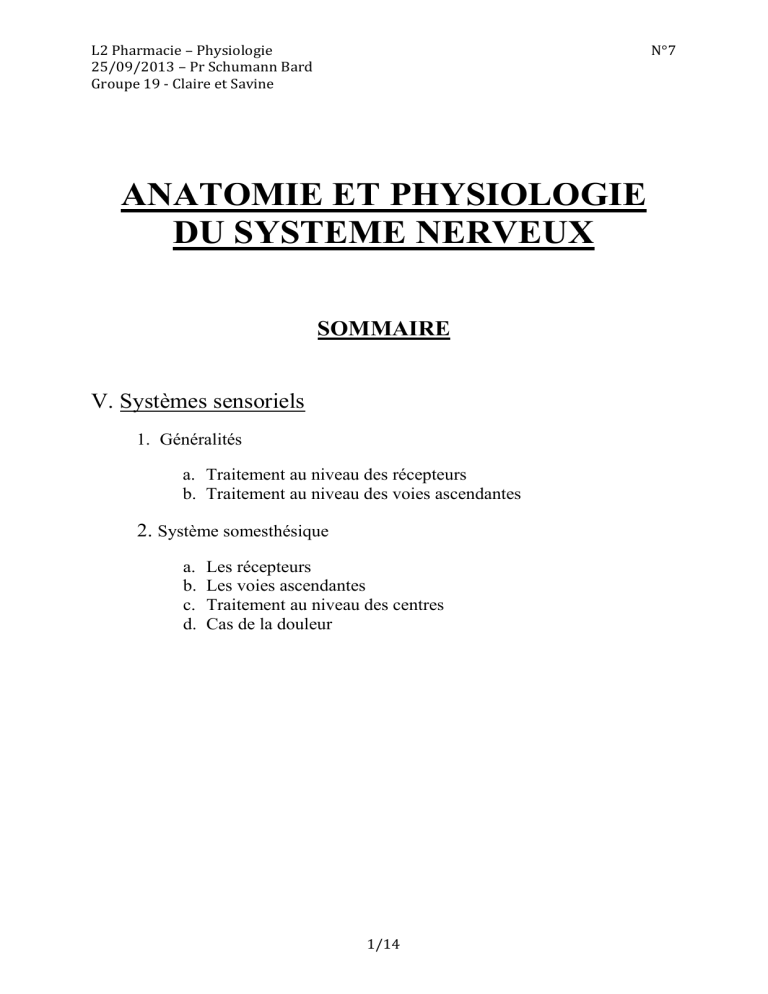 L2 Pharmacie – Physiologie N°7