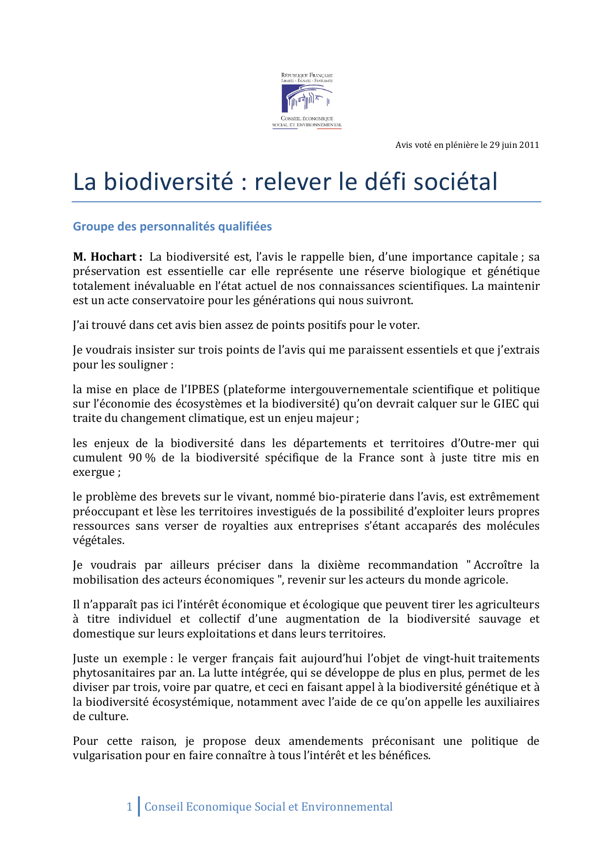 biodiversersité, auquel j’ai contribué au titre de membre de la section de