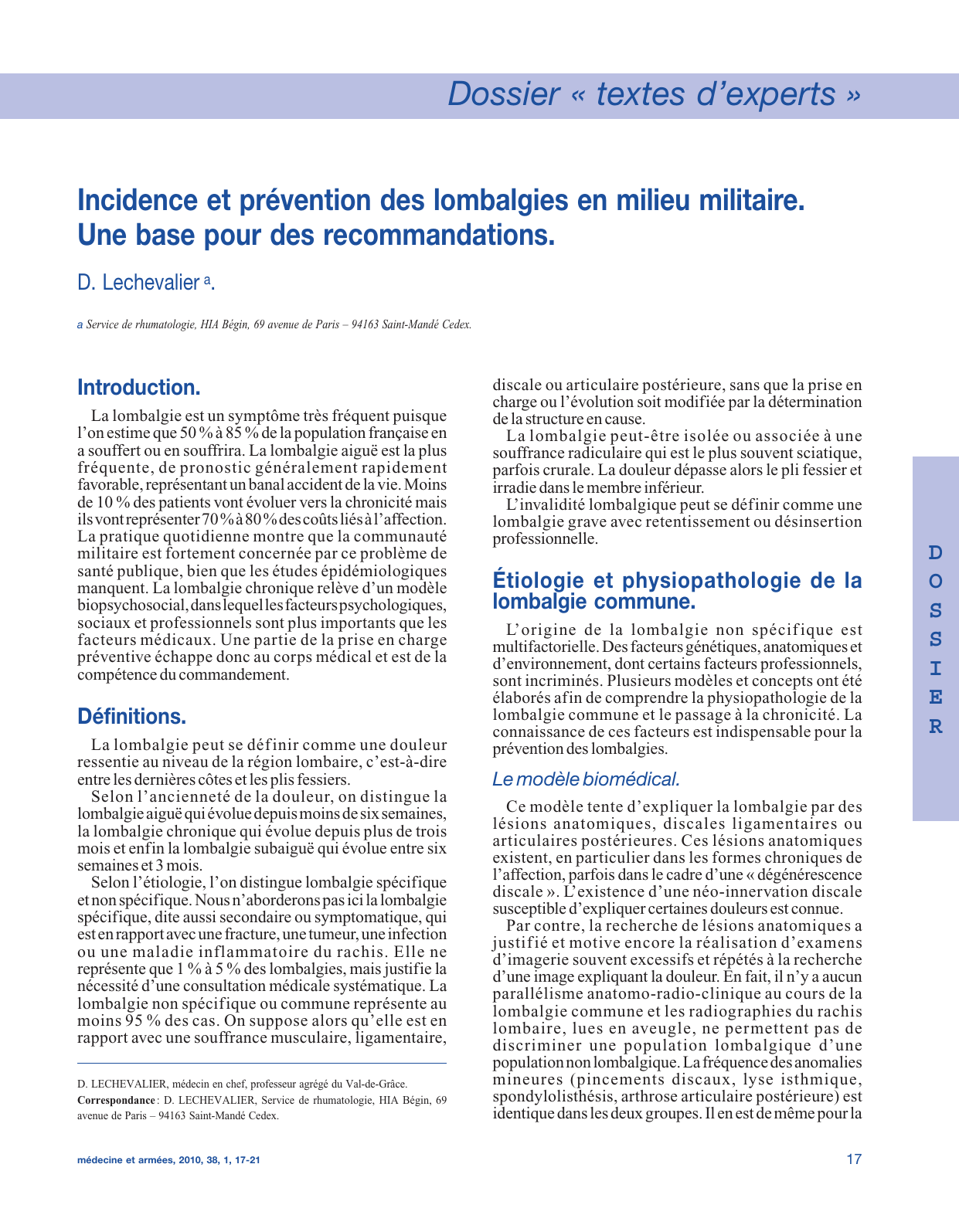 Dossier « textes d’experts » Une base pour des recommandations. Introduction.