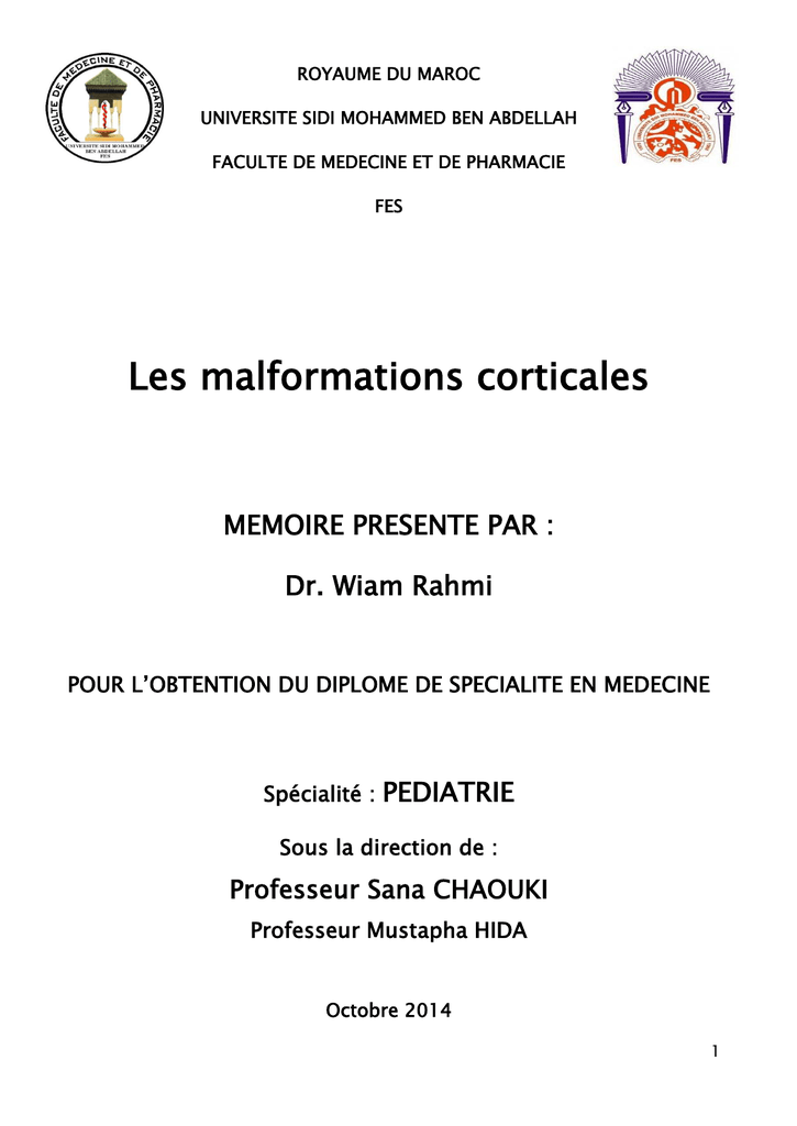 2-1. Malformation corticale due à un trouble de la prolifération cellulaire : ...... 35