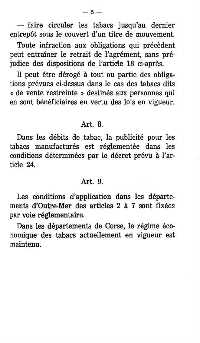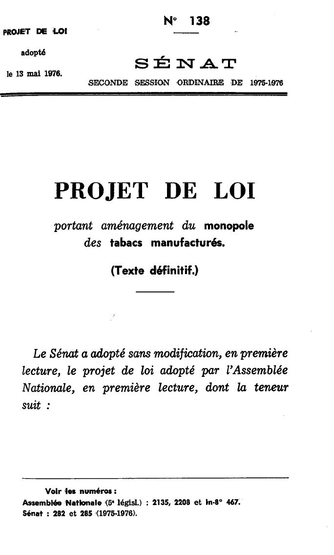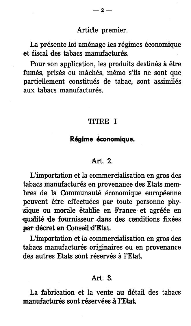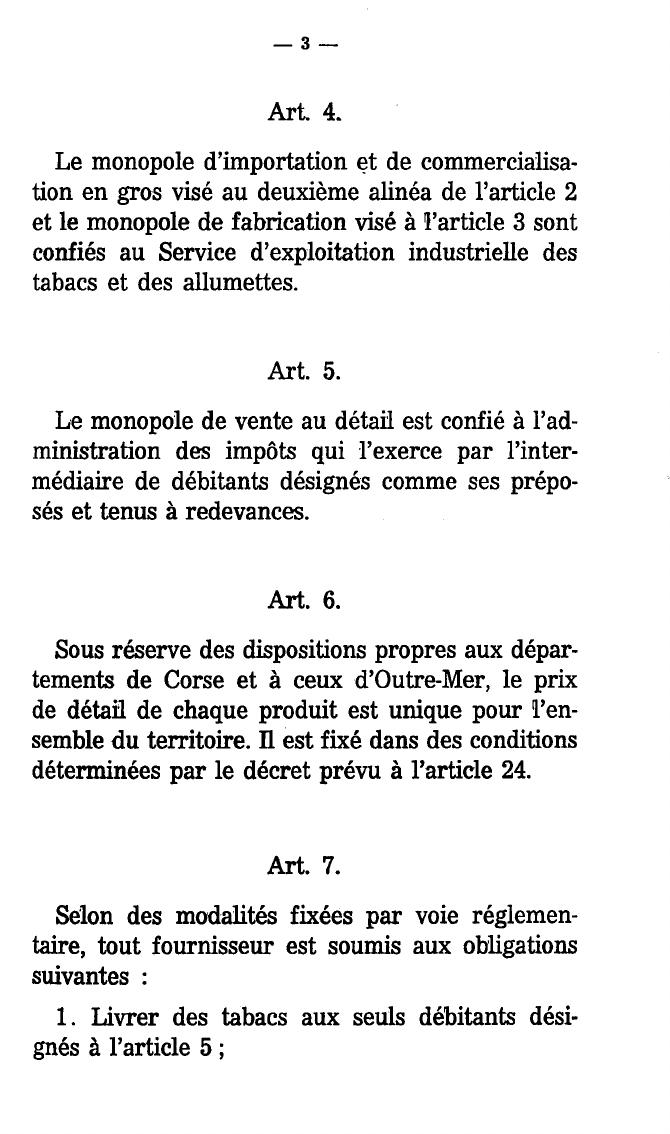 portant aménagement du monopole des tabacs manufacturés. (Texte définitif.)