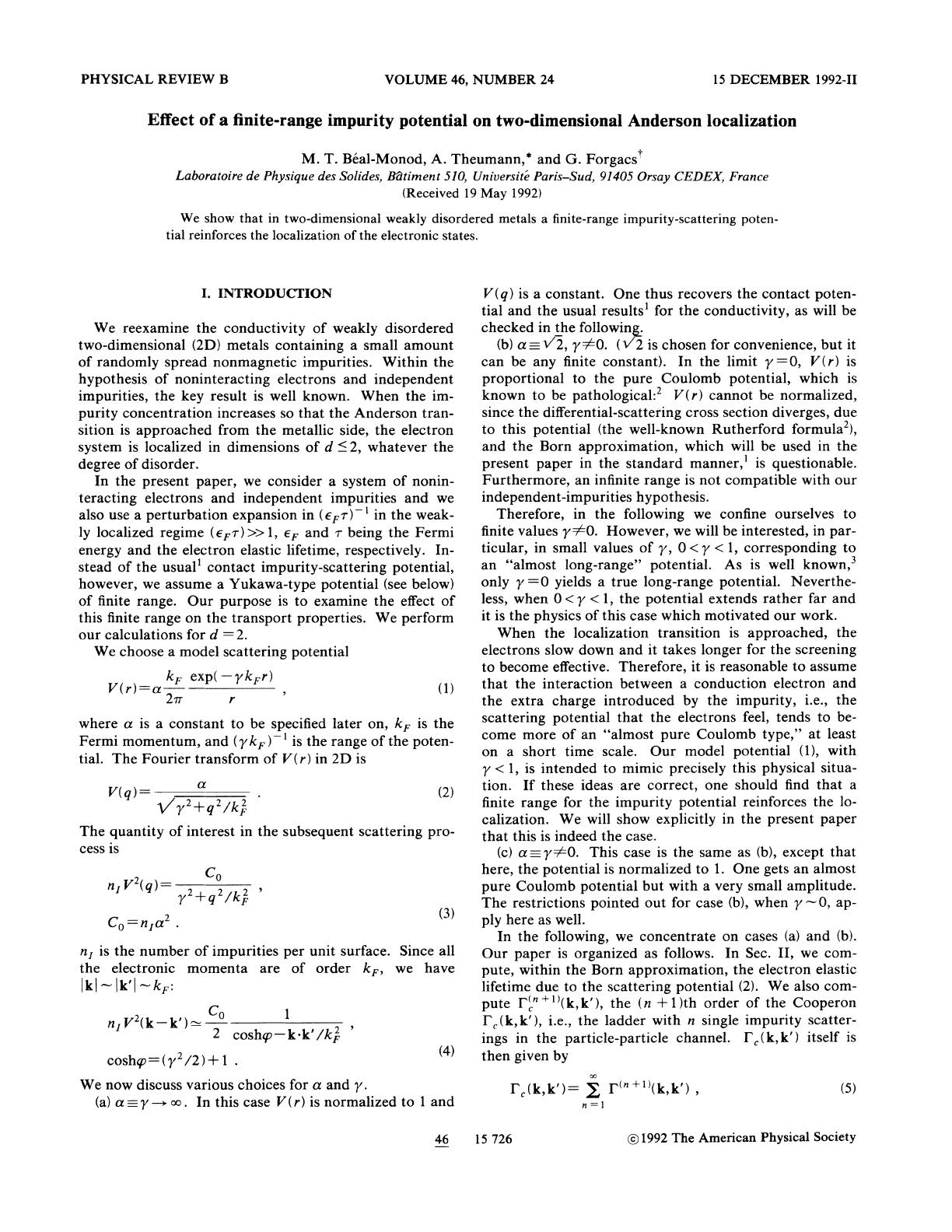 in two-dimensional weakly disordered metais a finite-range impurity-scattering poten-
