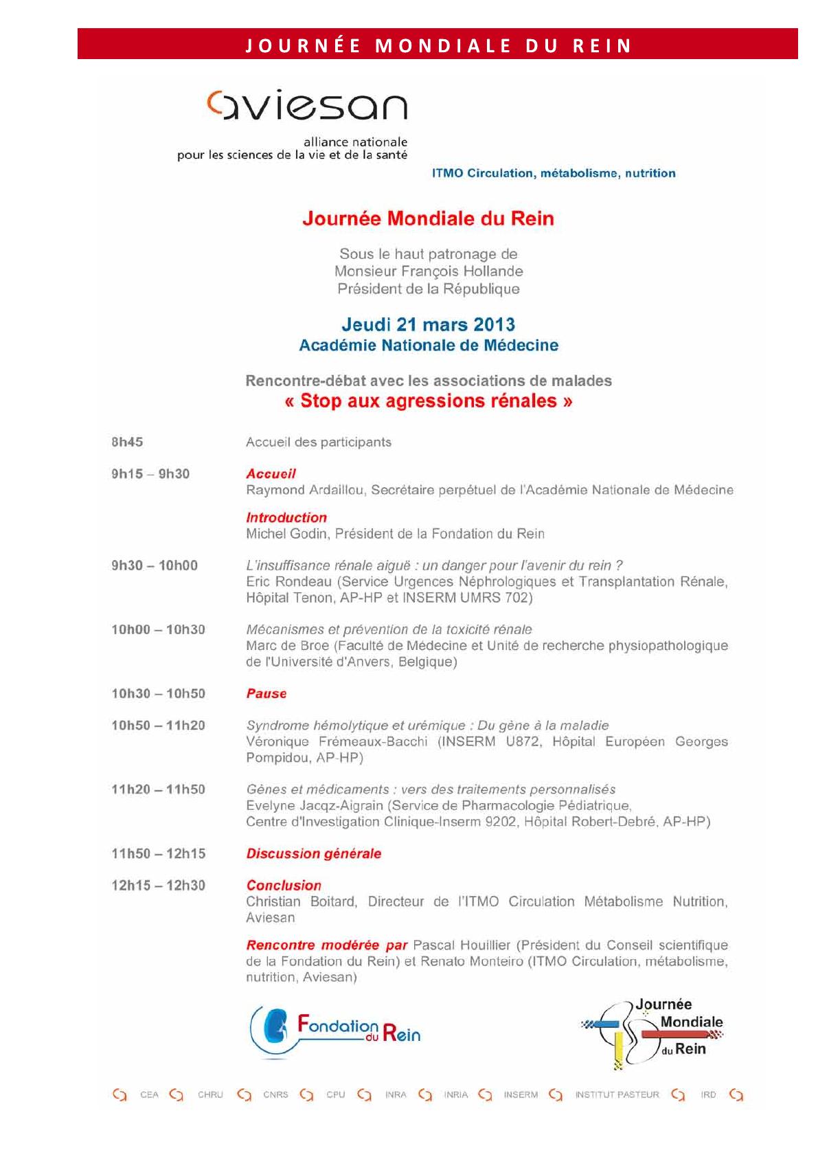 Mondiale du Rein pour la France. Il s'agit d’informer le public et de développer le dépistage et le diagnostic précoce
