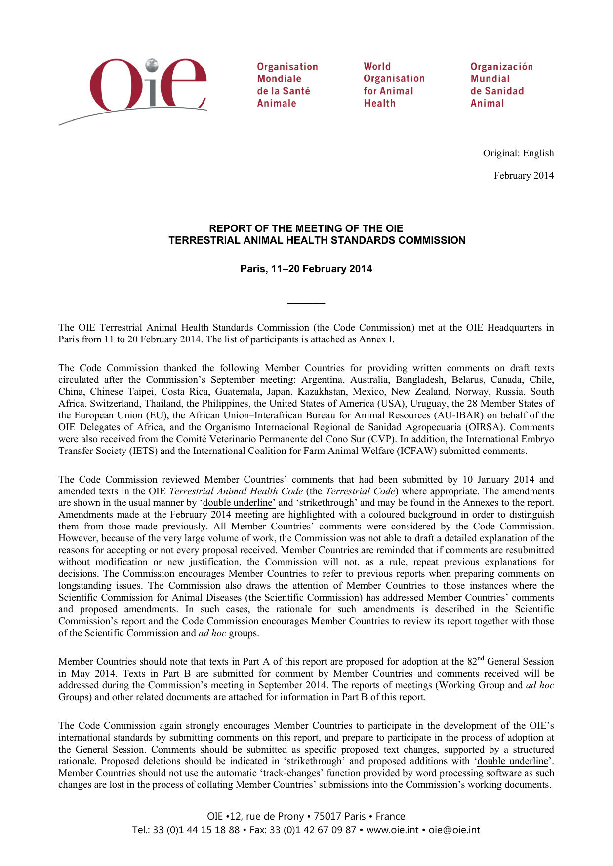 OIE Terrestrial Animal Health Standards Commission/February 2014
