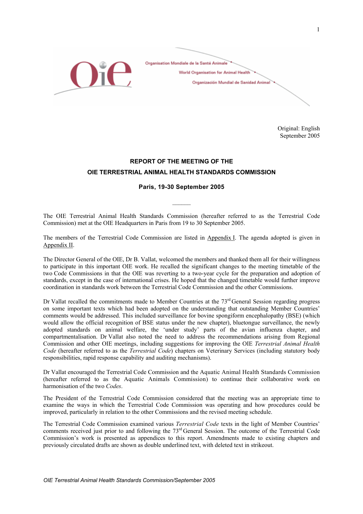 OIE Terrestrial Animal Health Standards Commission/September 2005