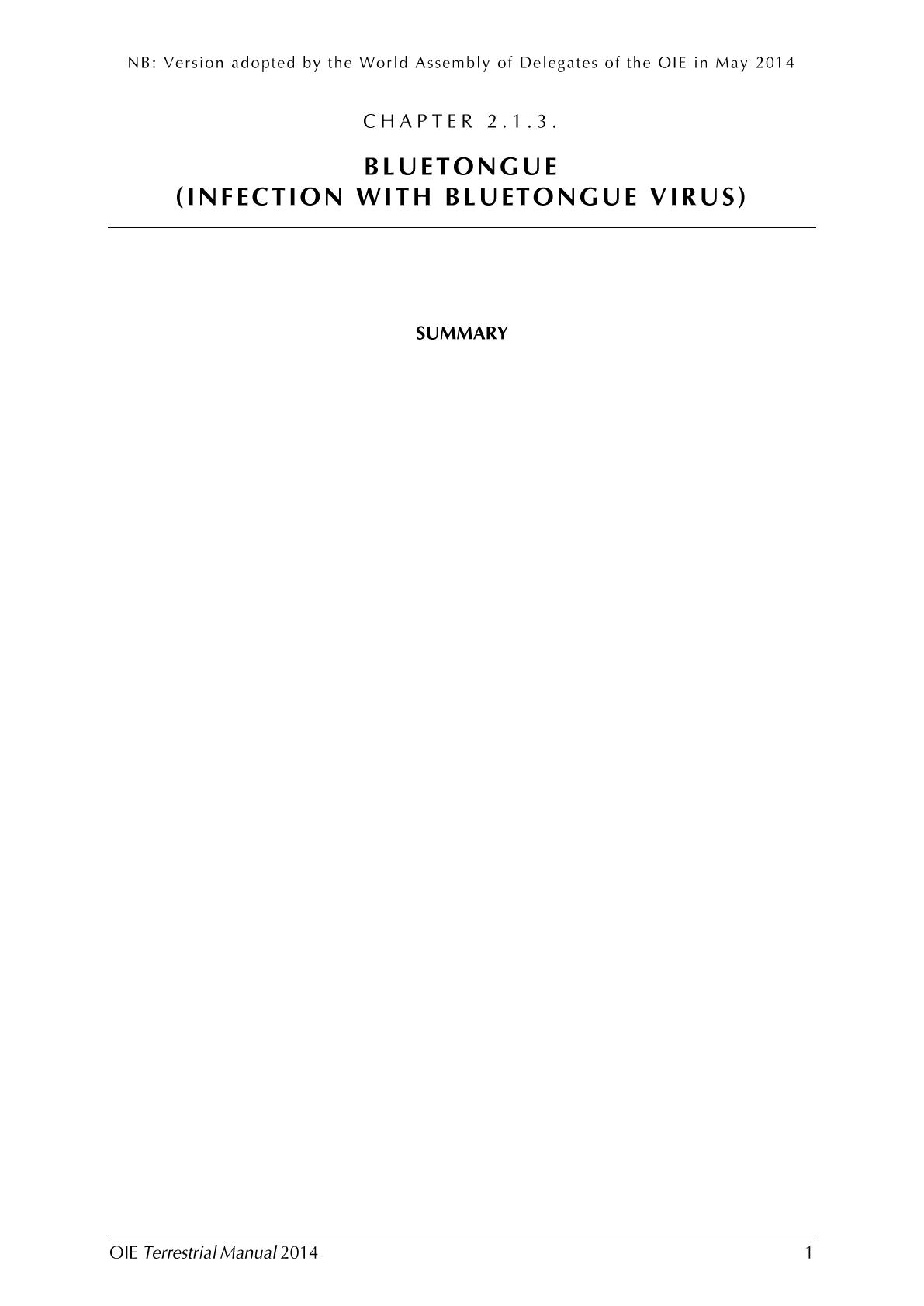 Control of BTV in animals is covered in Chapter 8.3 of the OIE Terrestrial Animal Health Code. Virus may be