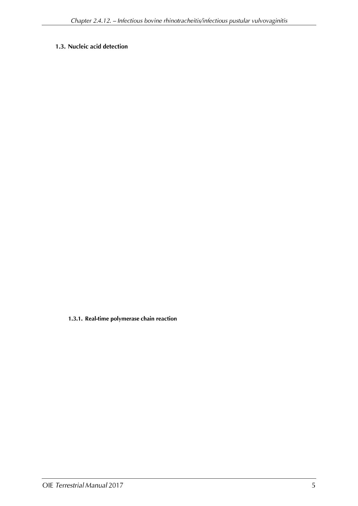 The following real-time PCR test method has been developed to detect BoHV-1 in extended