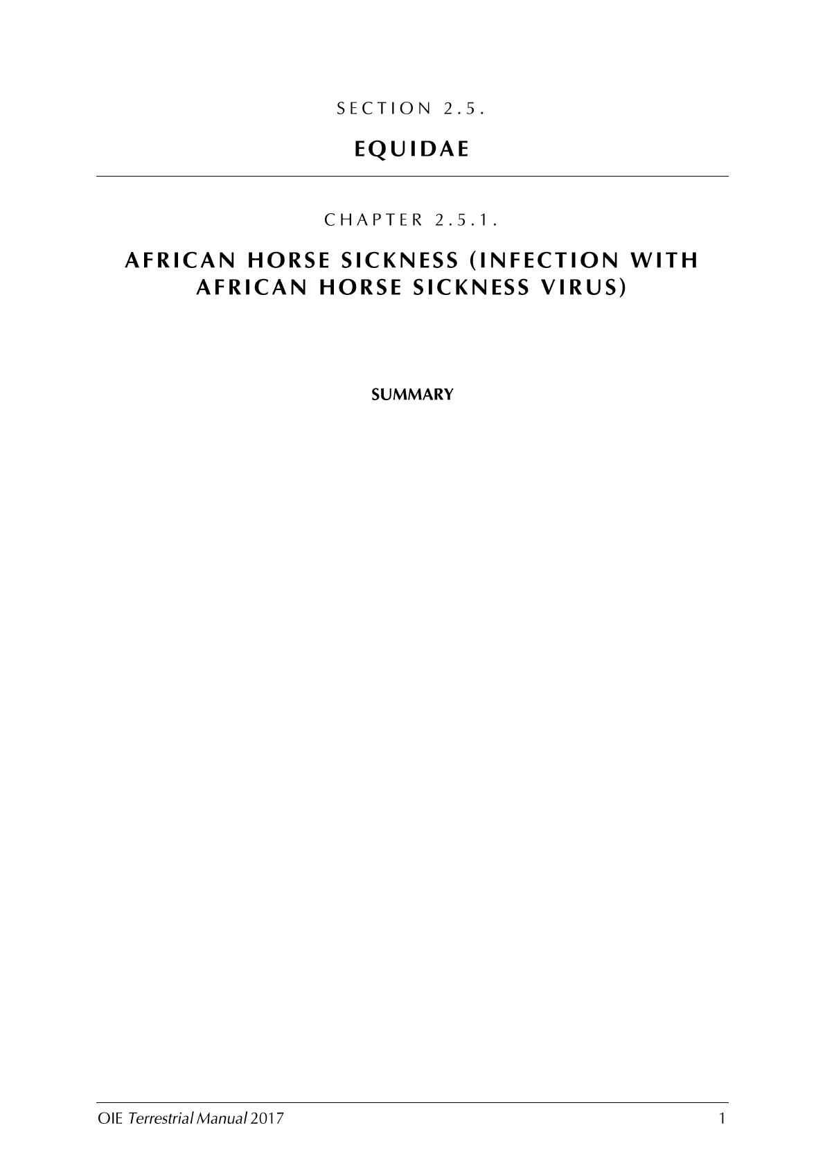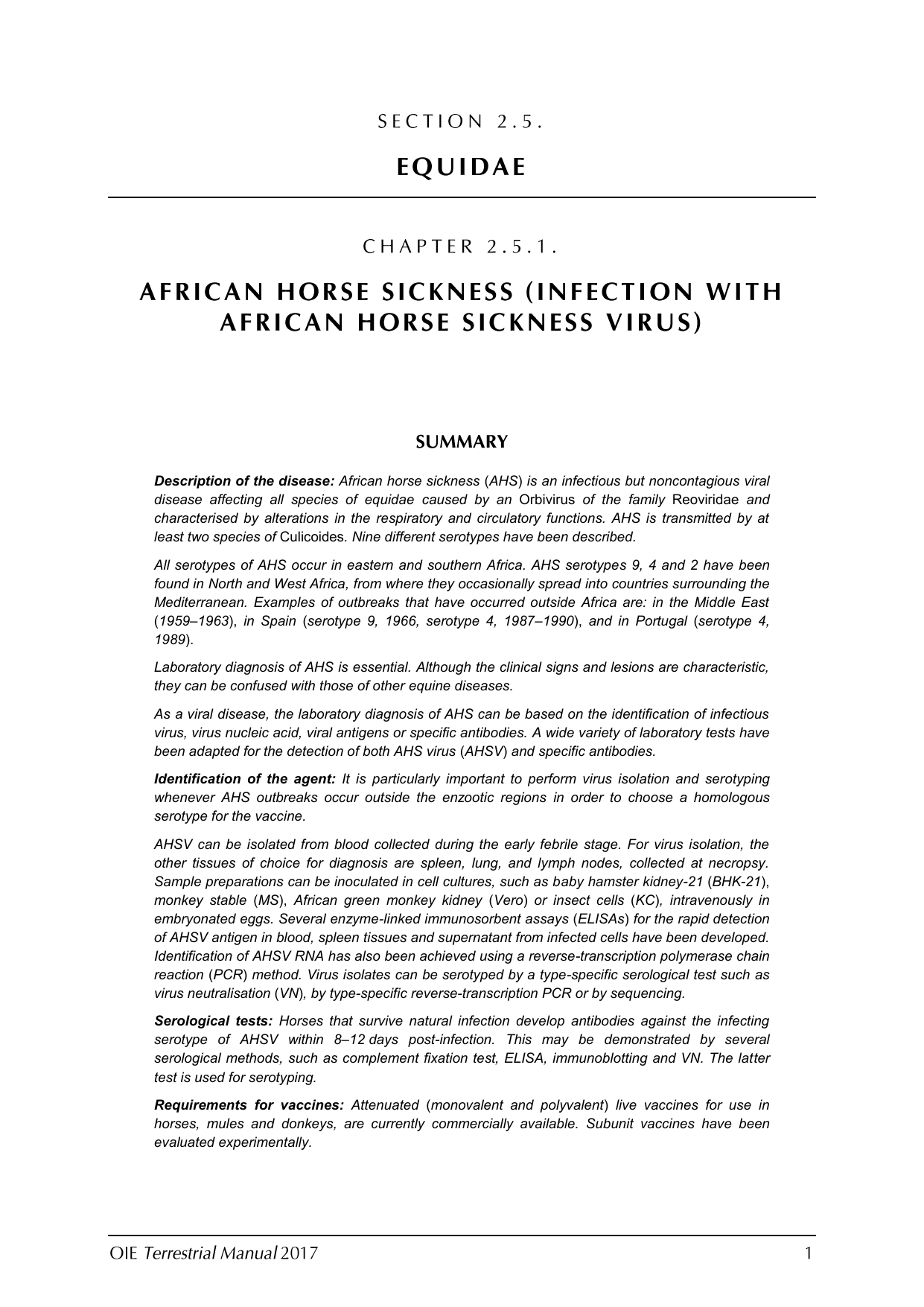African horse sickness (AHS) (Peste equina africana, Peste equine) is an infectious, non-contagious arthopod-