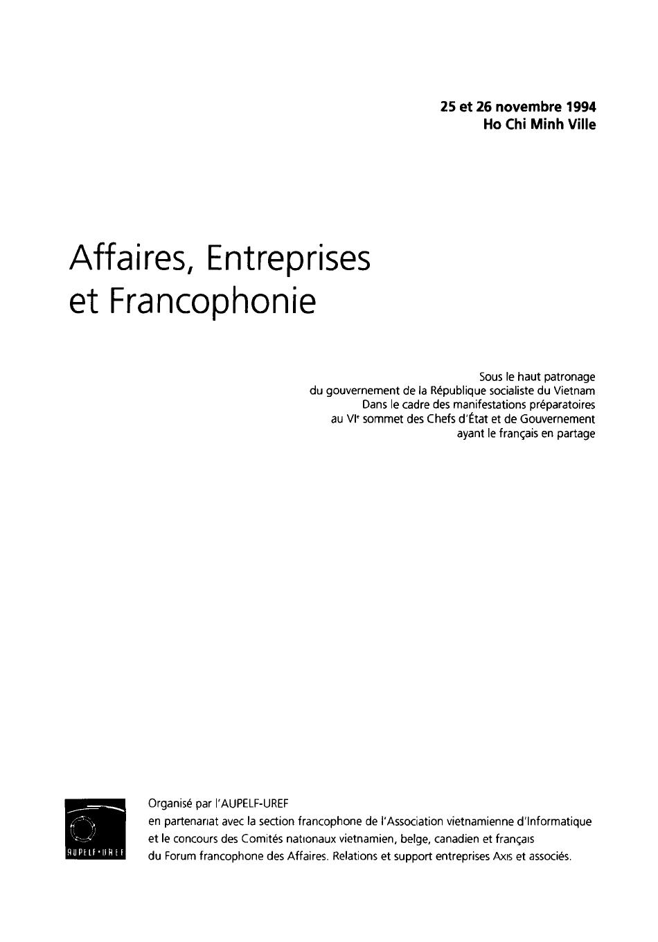 à l'occasion du colloque "Affaires, Entreprises et Francophonie"
