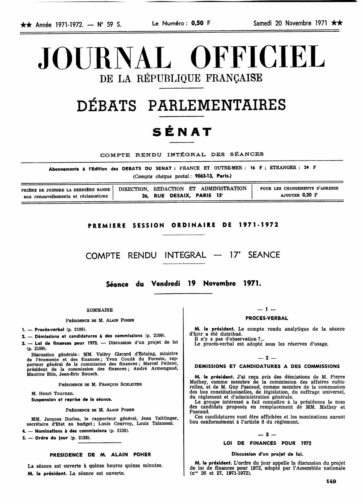 — SEANCE DU 19 NOVEMBRE 1971