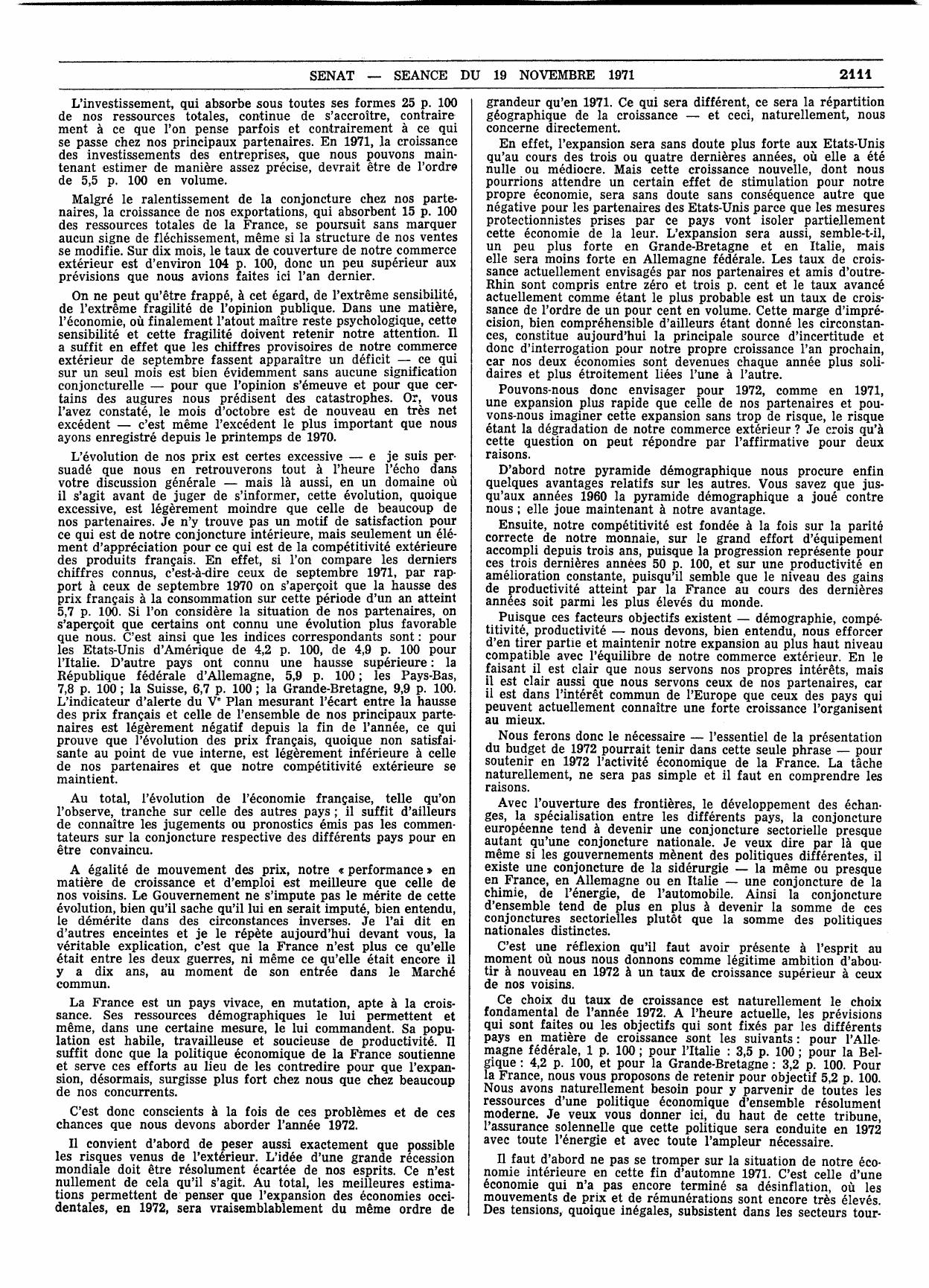 Le projet de loi de finances pour 1972 s'inscrit dans une préoc-