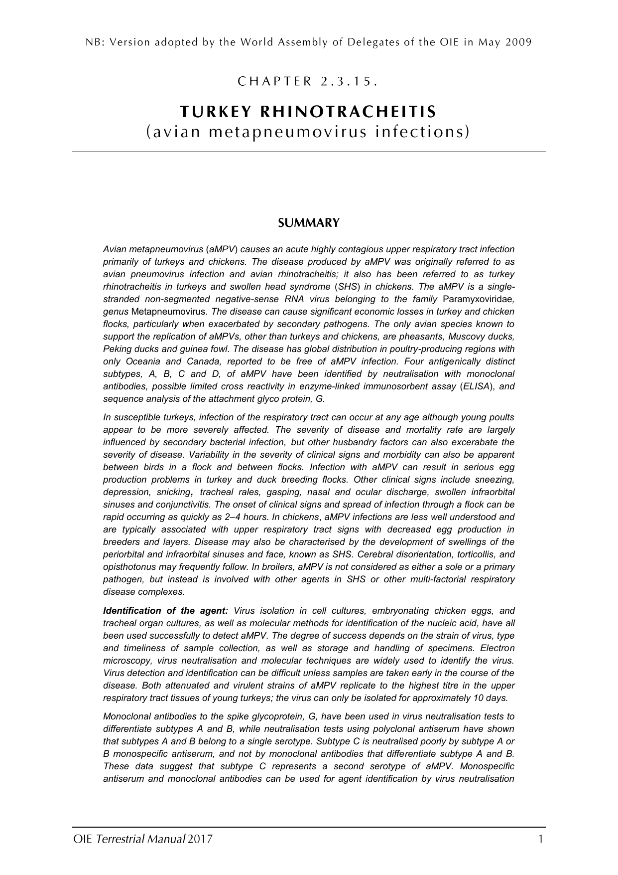 occasionally infected (Shin et al., 2002a), there have been no reports of vertical transmission of aMPV.
