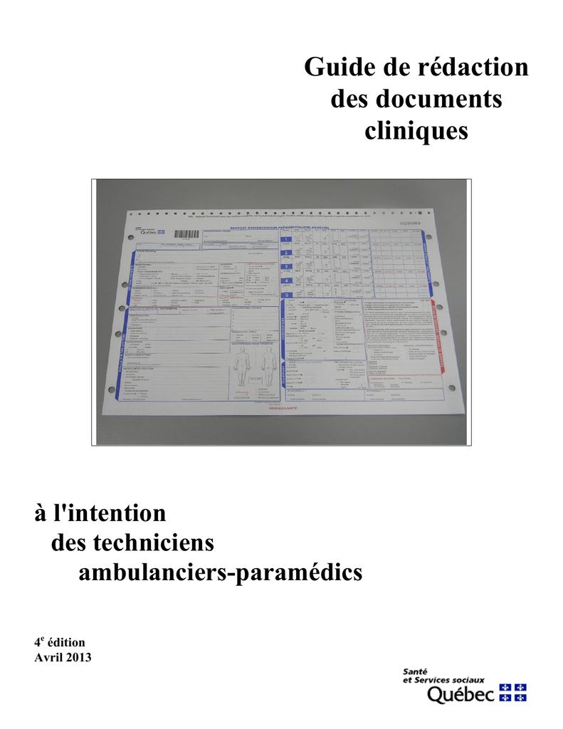 RAPPORT D'INTERVENTION PRÉHOSPITALIÈRE ..............................................................11