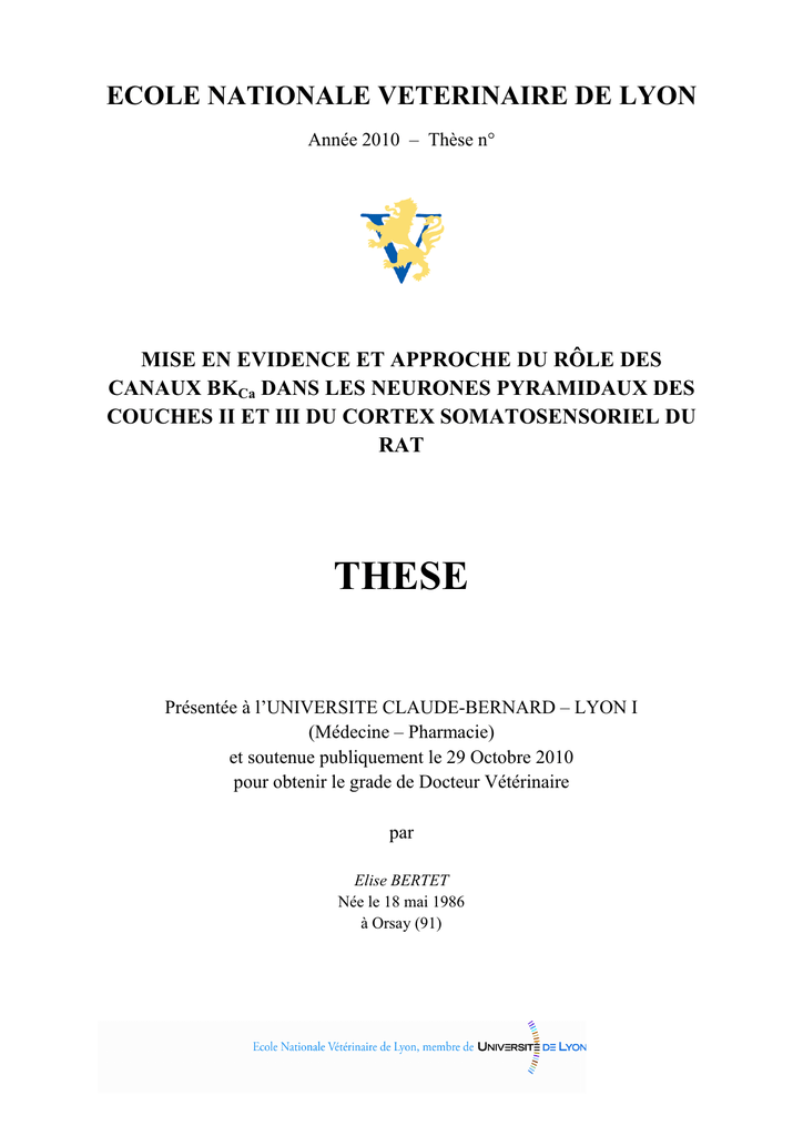 De l’Ecole Nationale Vétérinaire de Lyon,