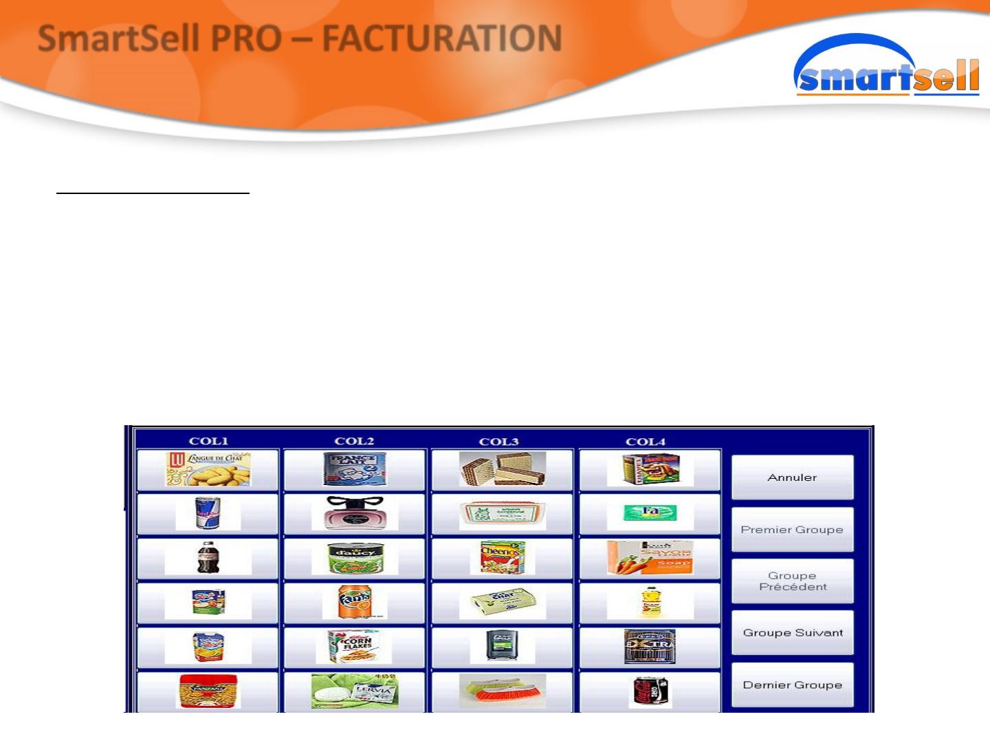 Possibilité de créer des groupes d’articles qui pourront être sélectionnés en un clique. Ces