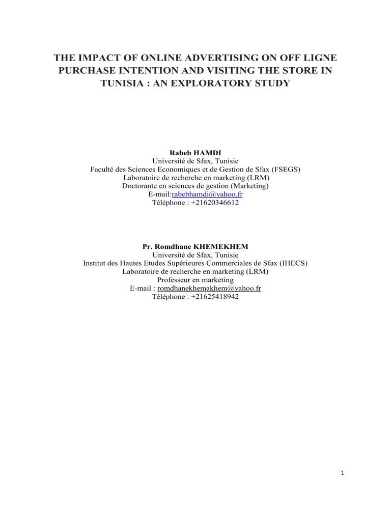 modérateurs et médiateursde l’effet de la publicité en ligne sur le comportement du