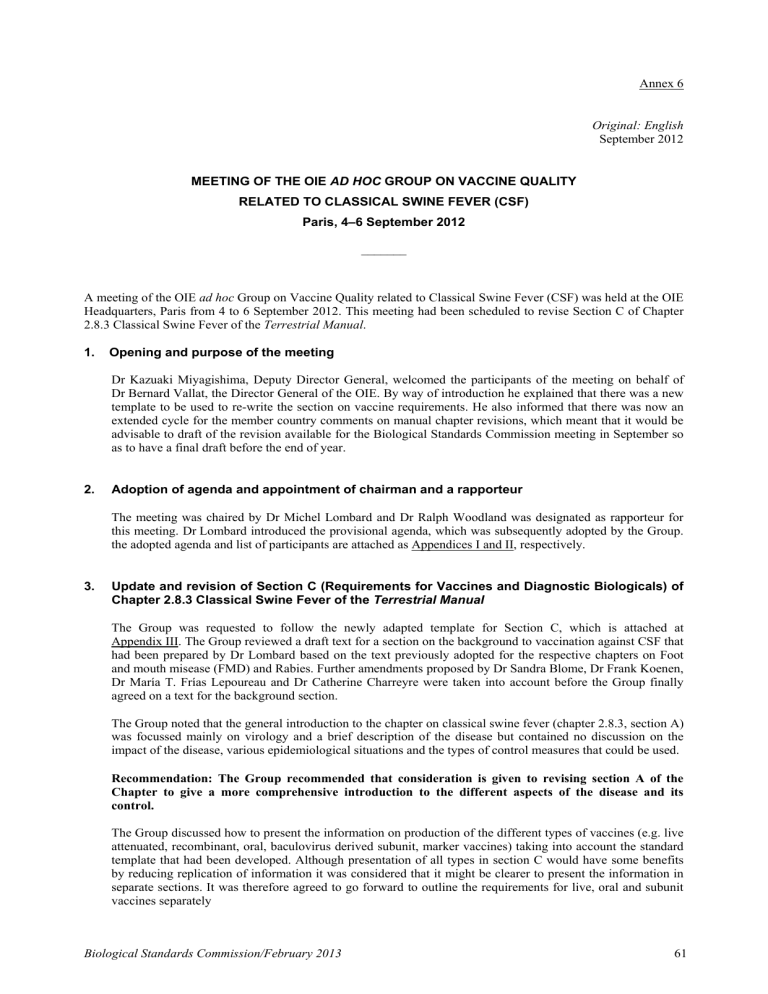 Annex 6 (contd) AHG on Vaccine Quality Related to CSF/September 2012