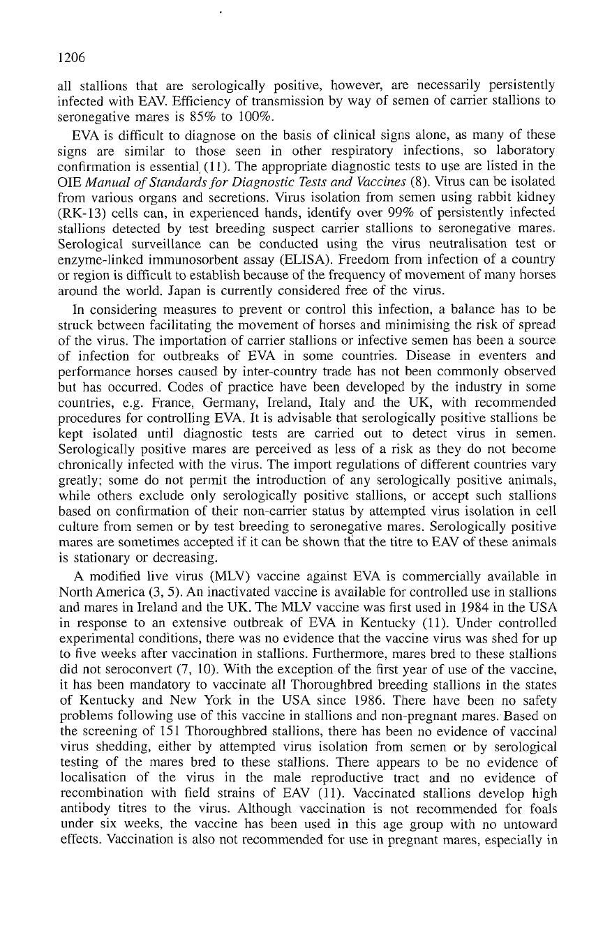 procedures for controlling EVA. It is advisable that serologically positive stallions be