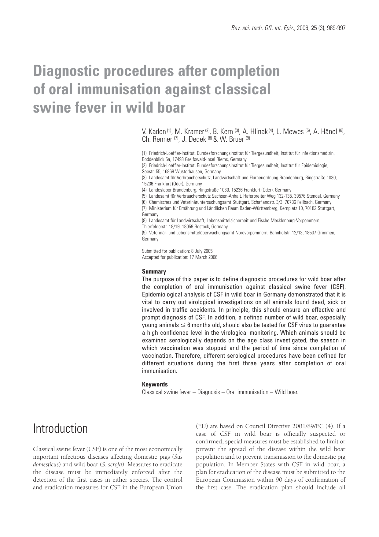 involved in traffic accidents were tested for CSFV and