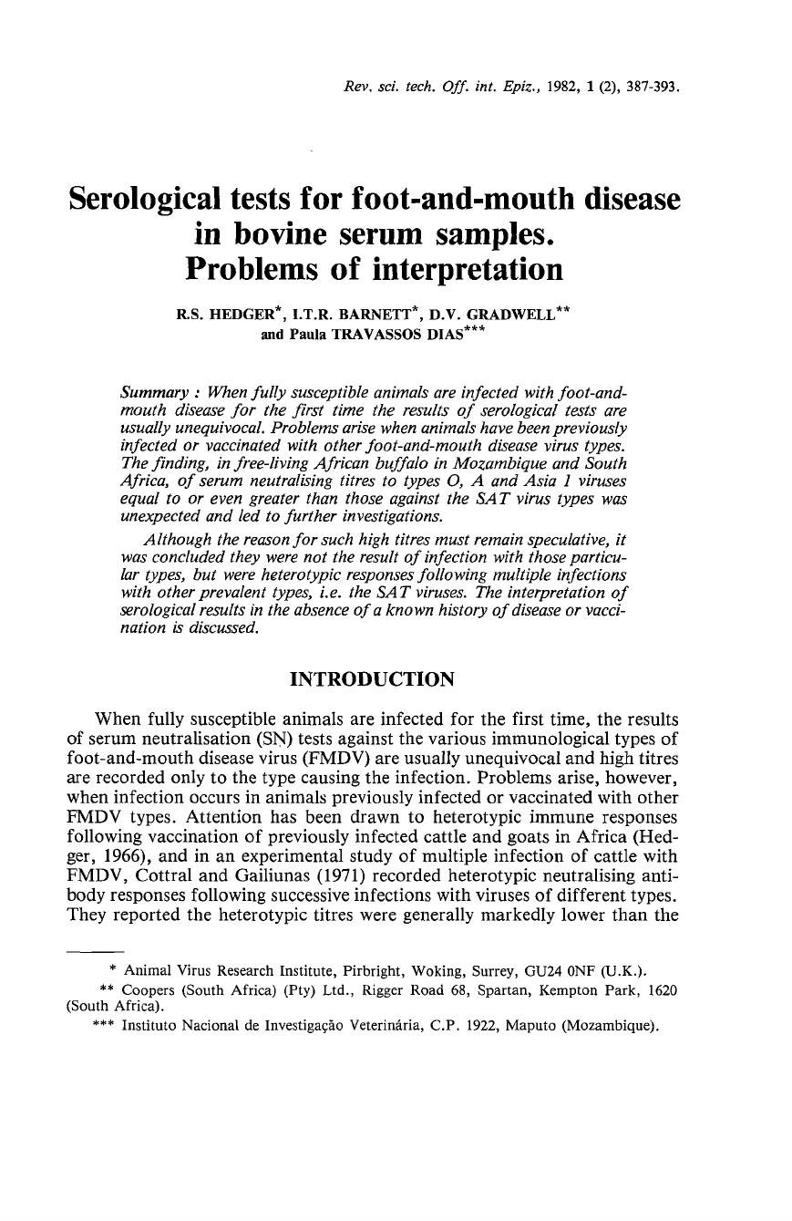 Africa, were also included in the tests. SN titres up to 1 in 355 were recorded