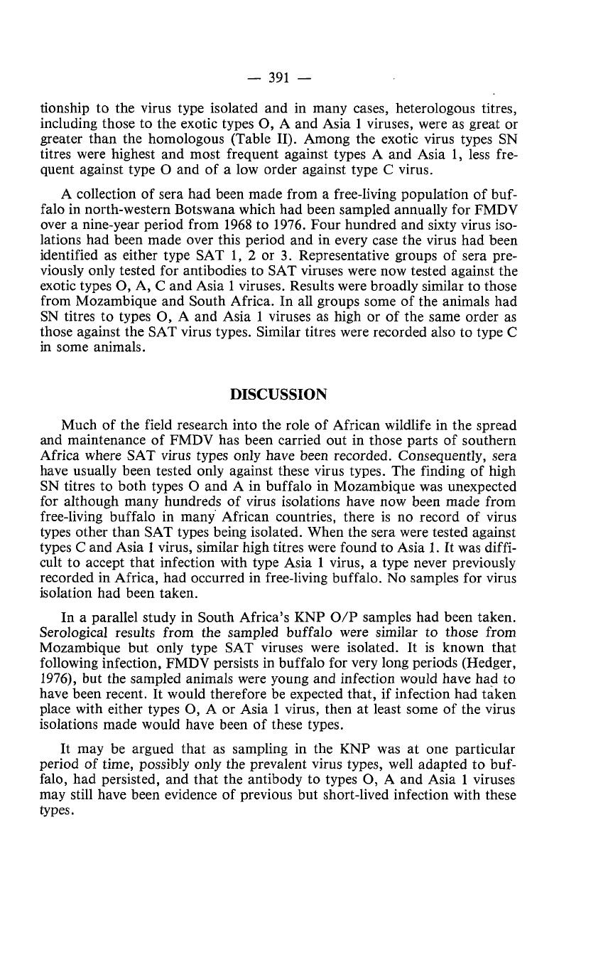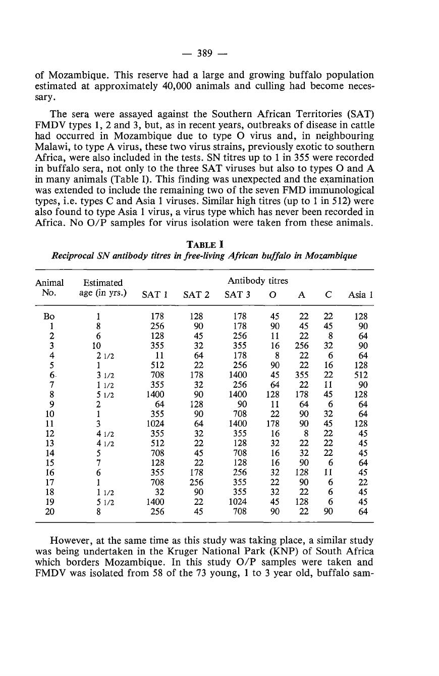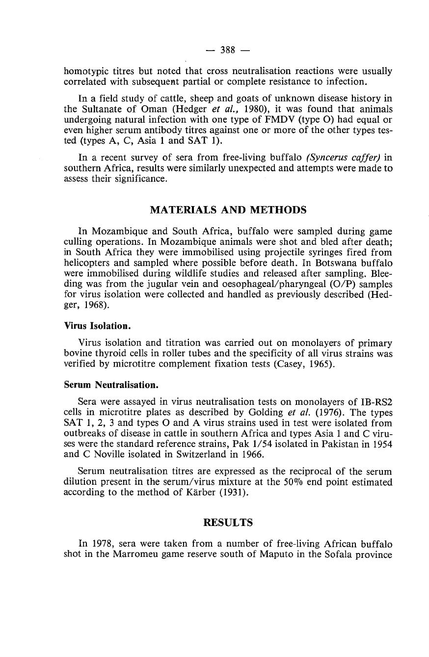 Africa. No O/P samples for virus isolation were taken from these animals.