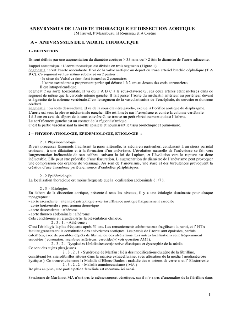 pour le 3 ou dissection aortique aiguë à partir de l’anévrysme.