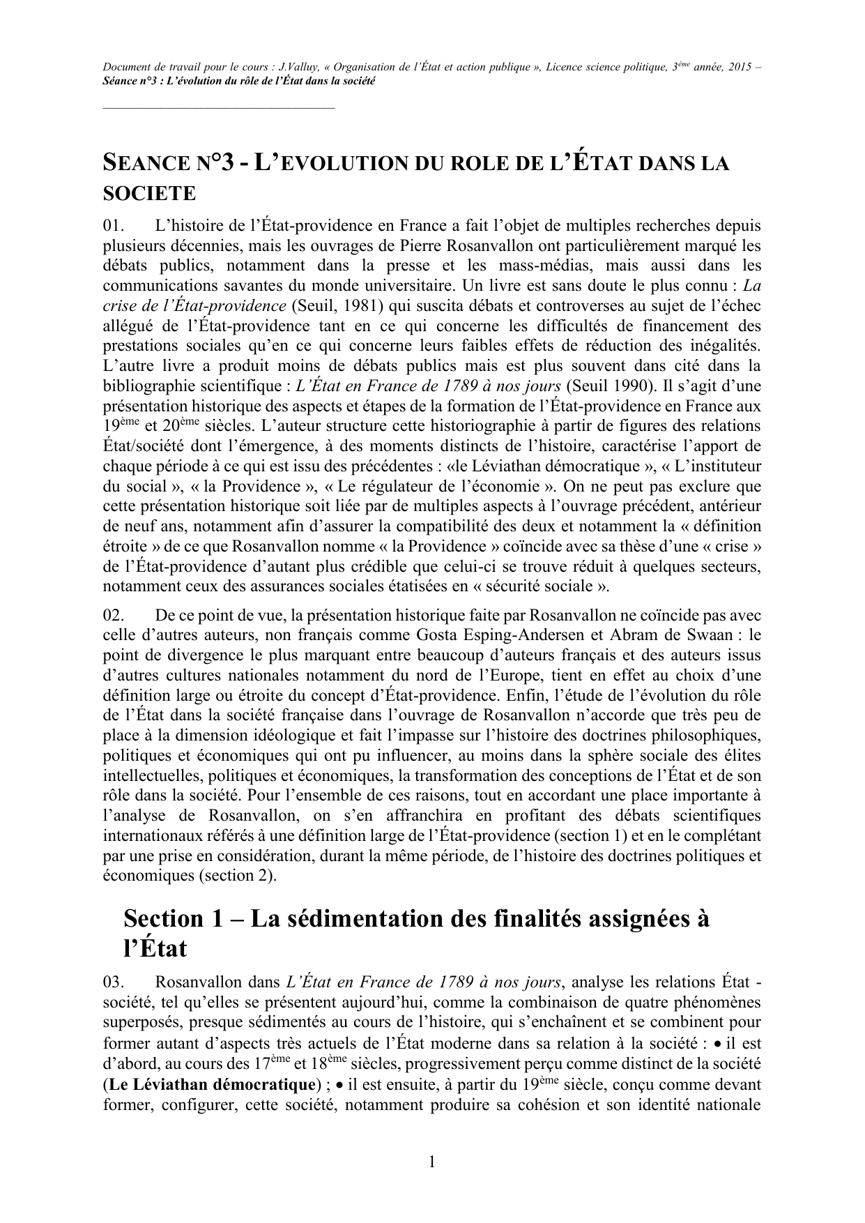 Document de travail pour le cours : J.Valluy, « Organisation de l’État et action publique », Licence science politique, 3ème année, 2015 –